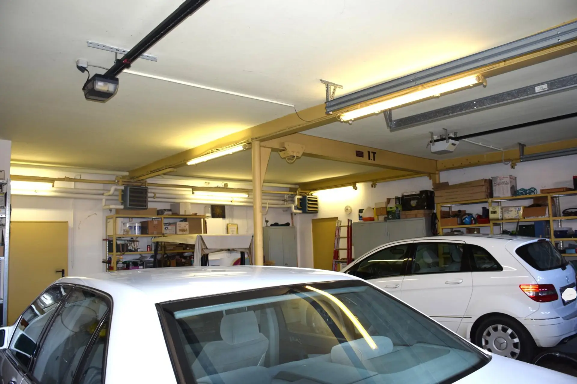 Das Objekt teilt sich auf rund 200m2 Wohnfläche im Obergeschoss und rund 290m² Gewerbefläche inkl. der 3 Garagen mit elektrischen Sektionaltoren auf.
