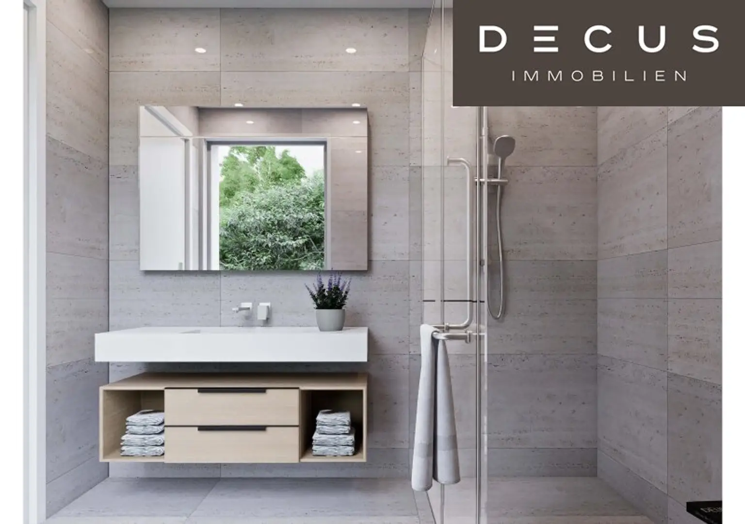 Hochwertige Ausstattung mit Eichenparkett, Feinsteinzeug, Markensanitärobjekten und Raffstores