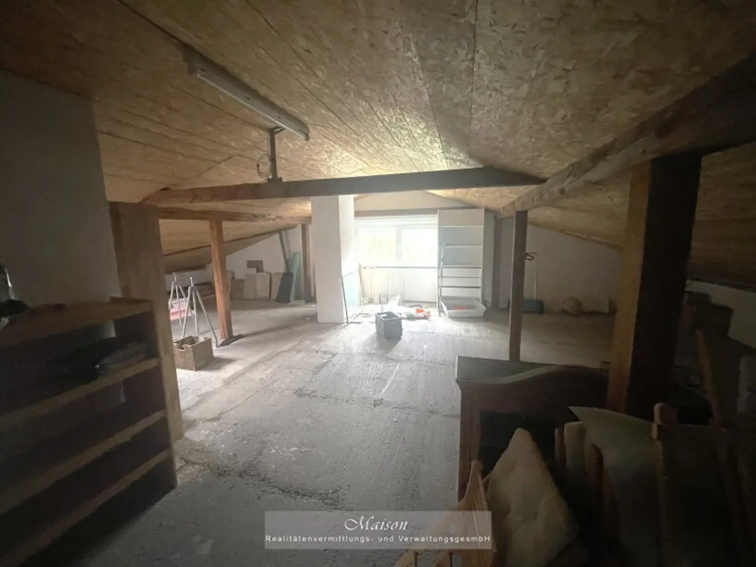 2. Stock: Diele, offener Wohnbereich ca. 75m² (welcher auf 3 Zimmer teilbar wäre), Schlafzimmer, begehbare Garderobe, großzügiges Bad mit Dusche, Wanne und WC.