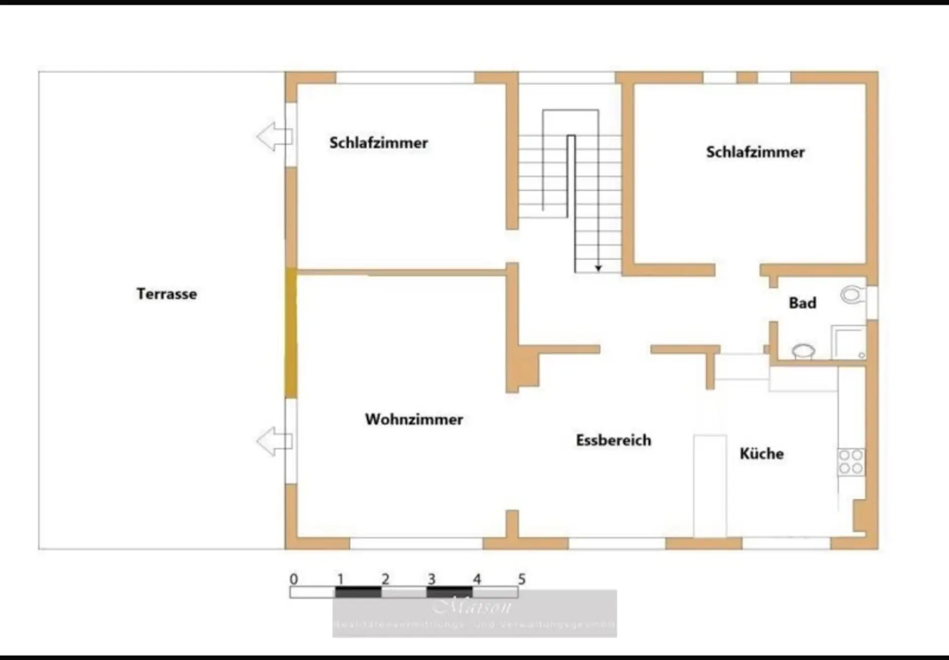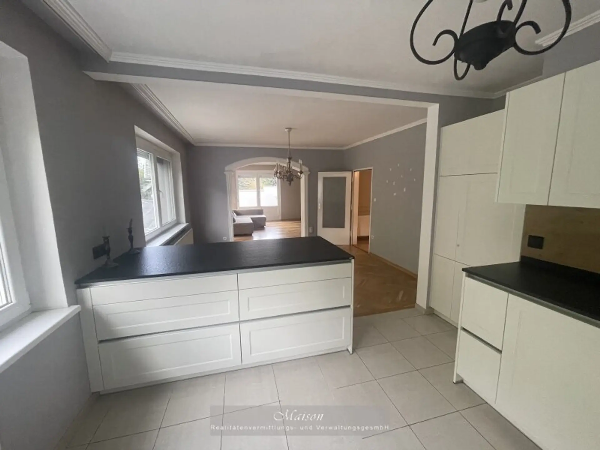 1.Stock: Diele, Wohnzimmer mit Essbereich und neuwertige, moderne Küche mit Kücheninsel, Duschbad mit WC, zwei Schlafzimmer und 60m² Sonnenterrasse,