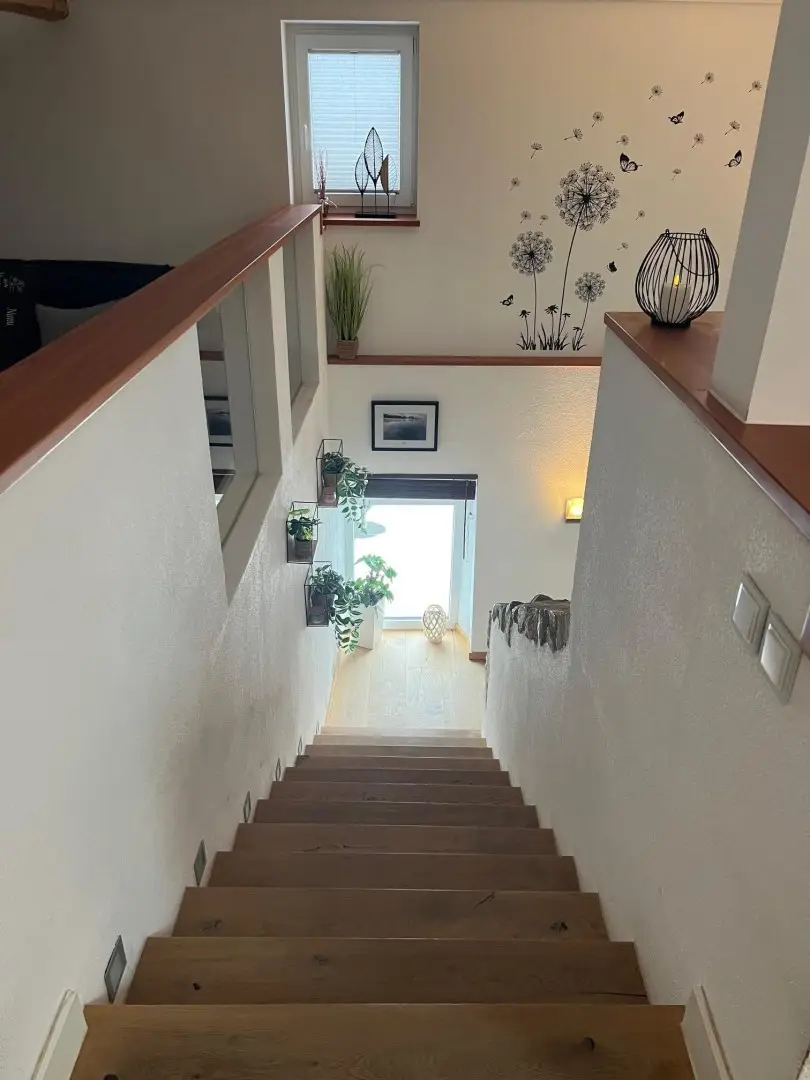 Am erneuerten Dach ist eine Photovoltaikanlage mit Speicher, es ist eine Wallbox für E-Autos vorhanden, die 3-fach verglasten Fenster wurden ca. 2021 eingebaut, ebenso wurden ein Vollwärmeschutz angebracht und die Installationen zum Großteil erneuert.