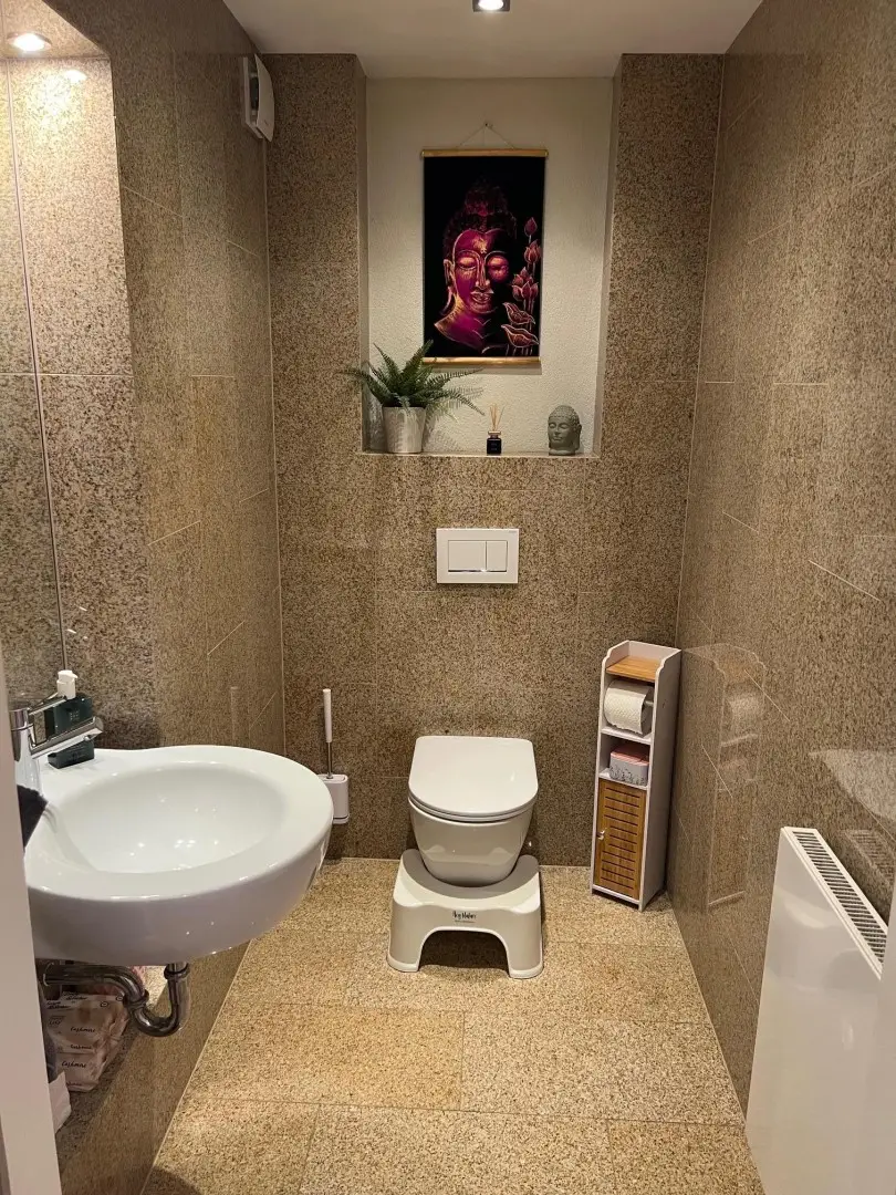 Im Erdgeschoss befindet sich eine Einliegerwohnung mit ca. 90 - 100 m² und einem Schlafzimmer, Küche, Wohnzimmer, Bad, gr. Terrasse mit Gartenzugang, Flur und WC.