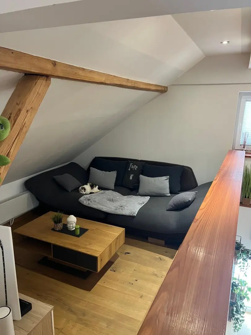 Die größere 2. Wohneinheit mit eigenem Eingang befindet sich im 1. OG (ca. 100,88 m²) u. Dachgeschoss (ca. 78 - 83,5 m²)und hat folgende Raumaufteilung vorzuweisen:
