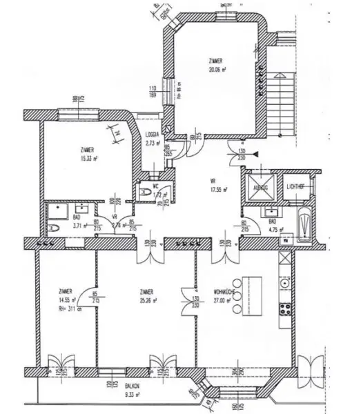 VORZIMMER, 4 ZIMMER (3ER WG-GEEIGNET), KÜCHE, CA. 9,33 M2 BALKON, CA. 2,73 M2 LOGGIA, 2 BADEZIMMER, SEPARATES WC