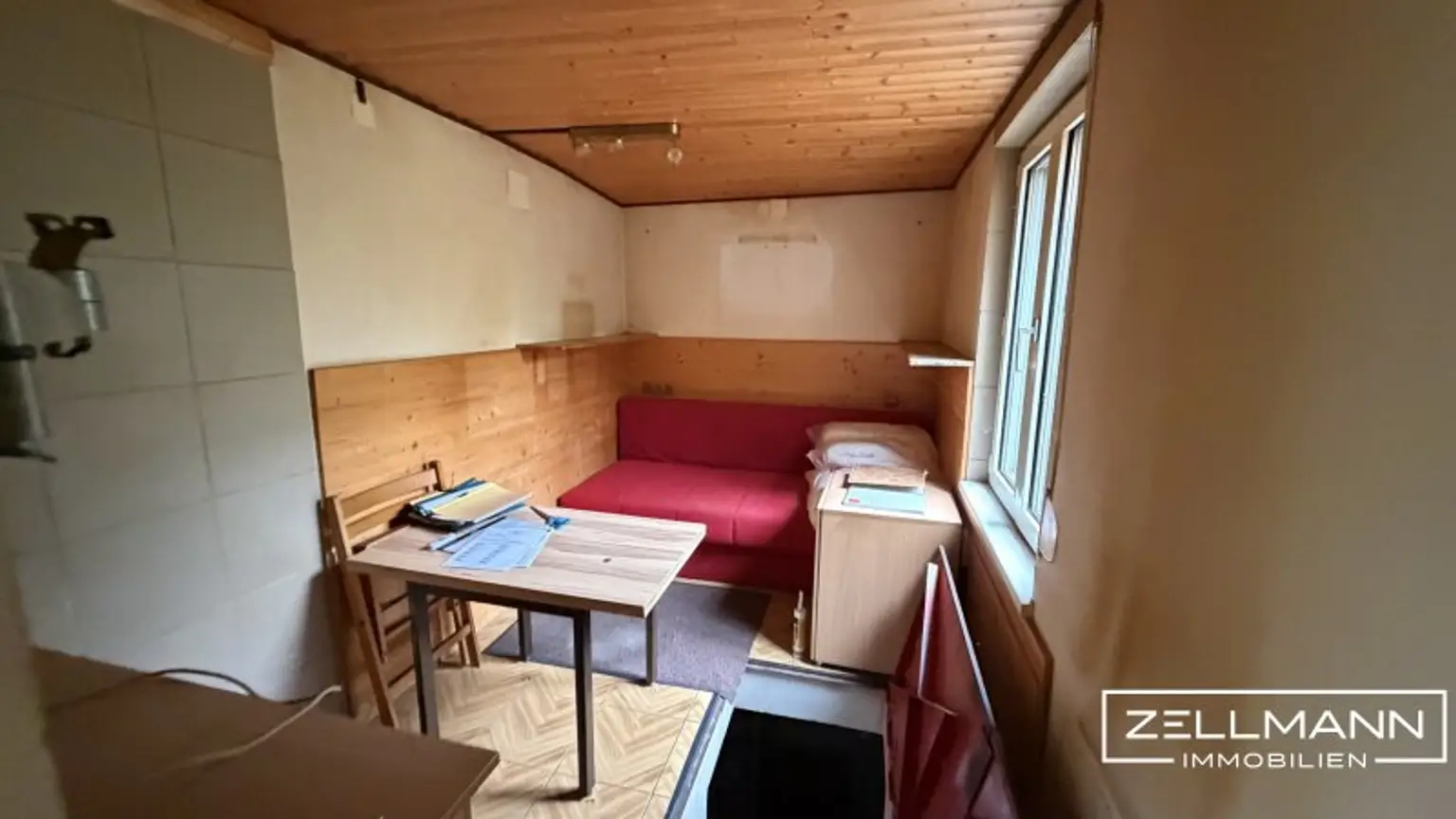 Auf der Liegenschaft befindet sich ein gepflegter Holzbungalow, der aktuell über: