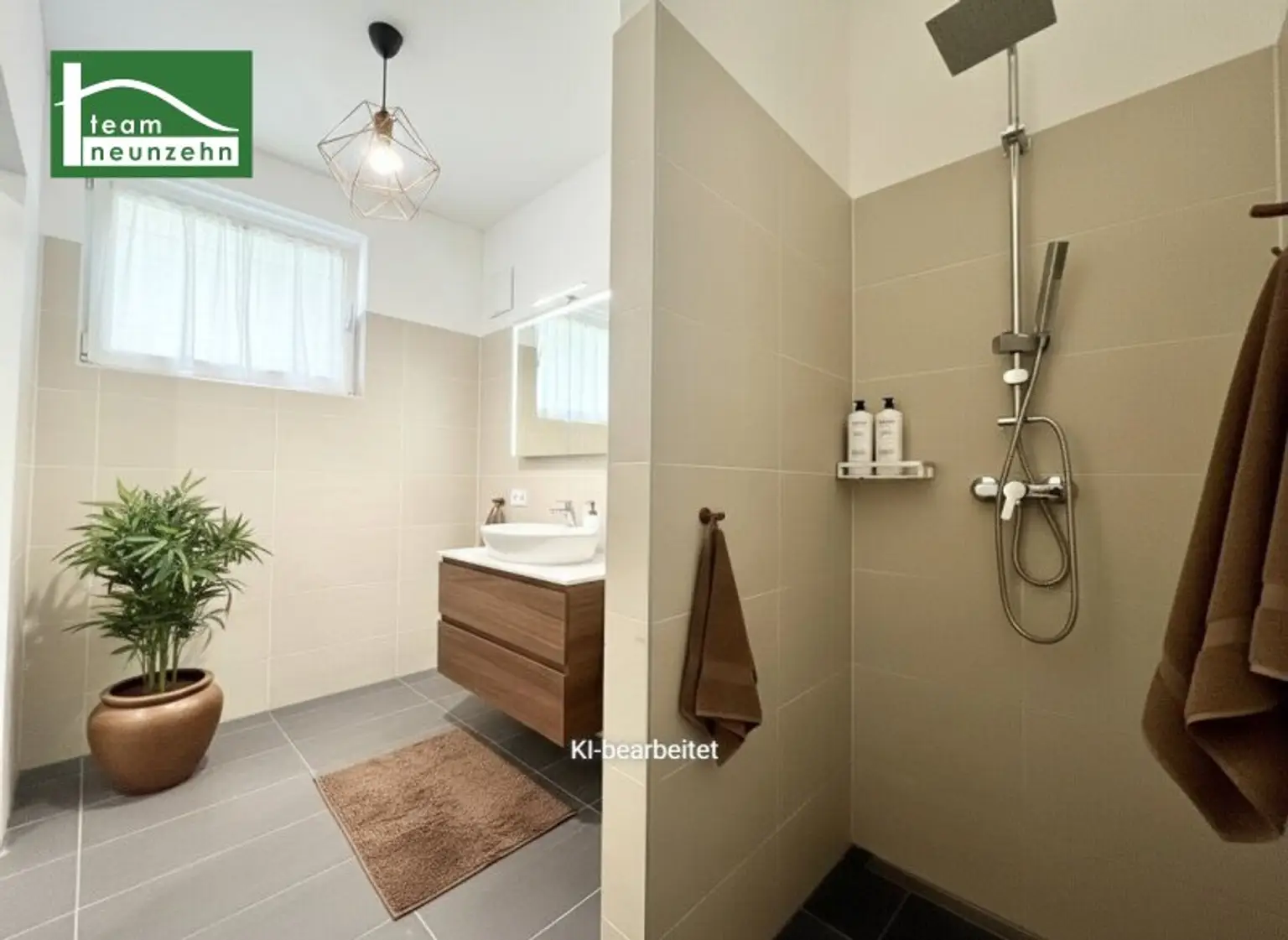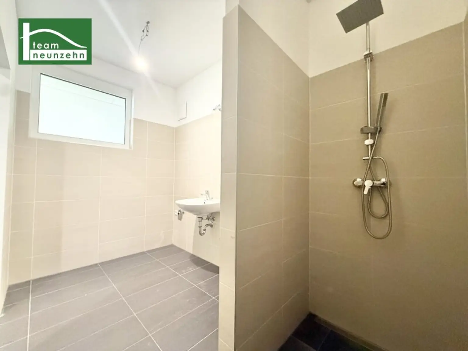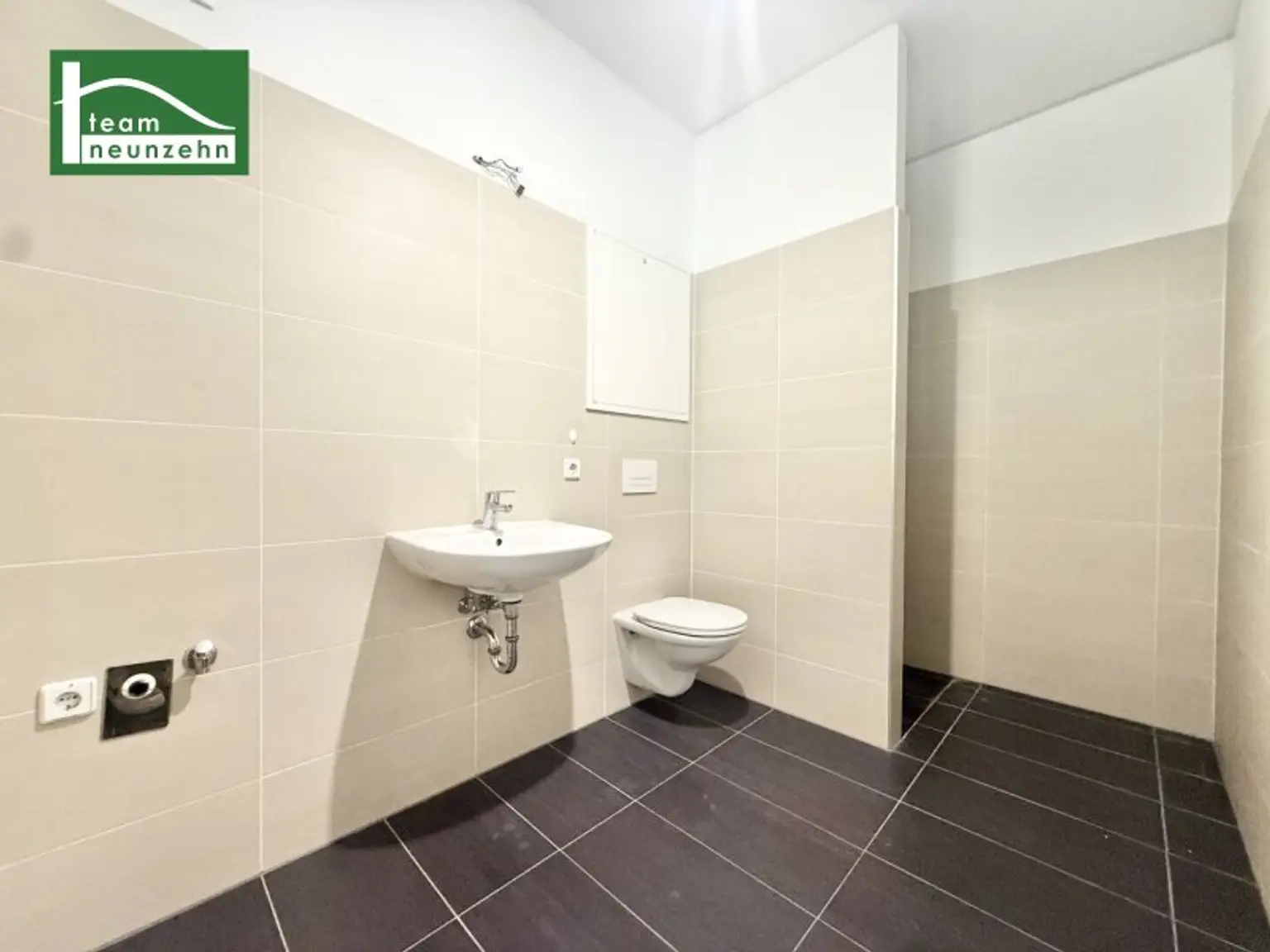 * Feinsteinzeugfliesen in den Nassbereichen