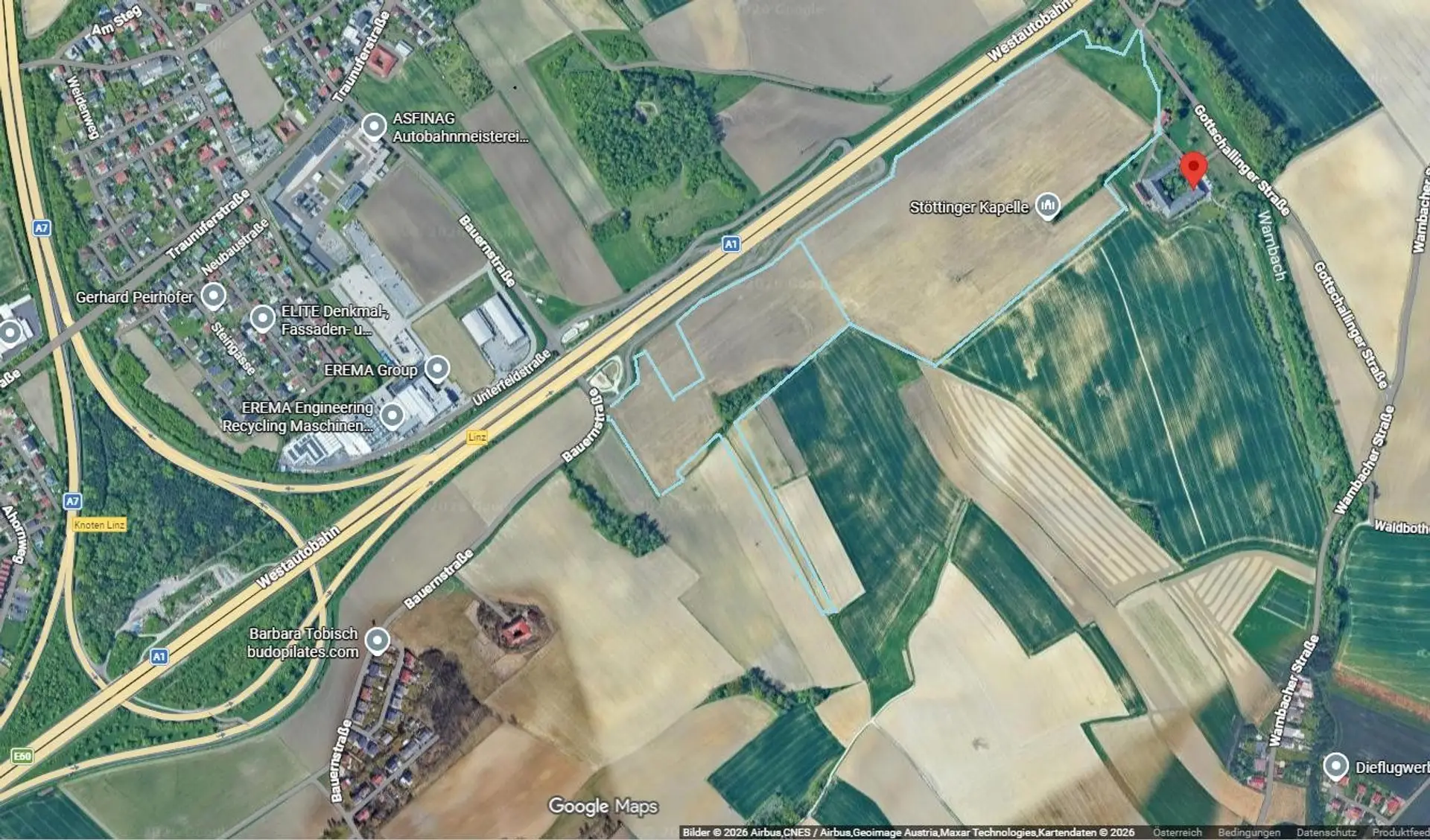 Es liegt zwischen der Bauernstraße, 4052 Ansfelden und der Gottschallinger Straße 88, 4030 Linz südlich der Westautobahn am Stadtrand von Linz.