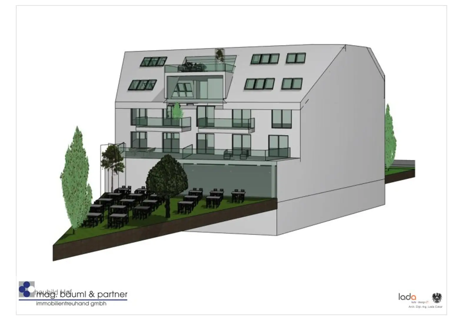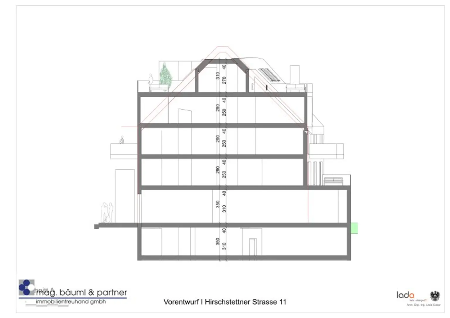 Alternatiiv kann auch der bisher gastronomisch genutzte Bestand, aufgrund einer aufrechten Betriebsanlagengenehmigung, in dieser Art weiter genutzt werden. Zum Beispiel als Heurigenlokal oder ähnliches
