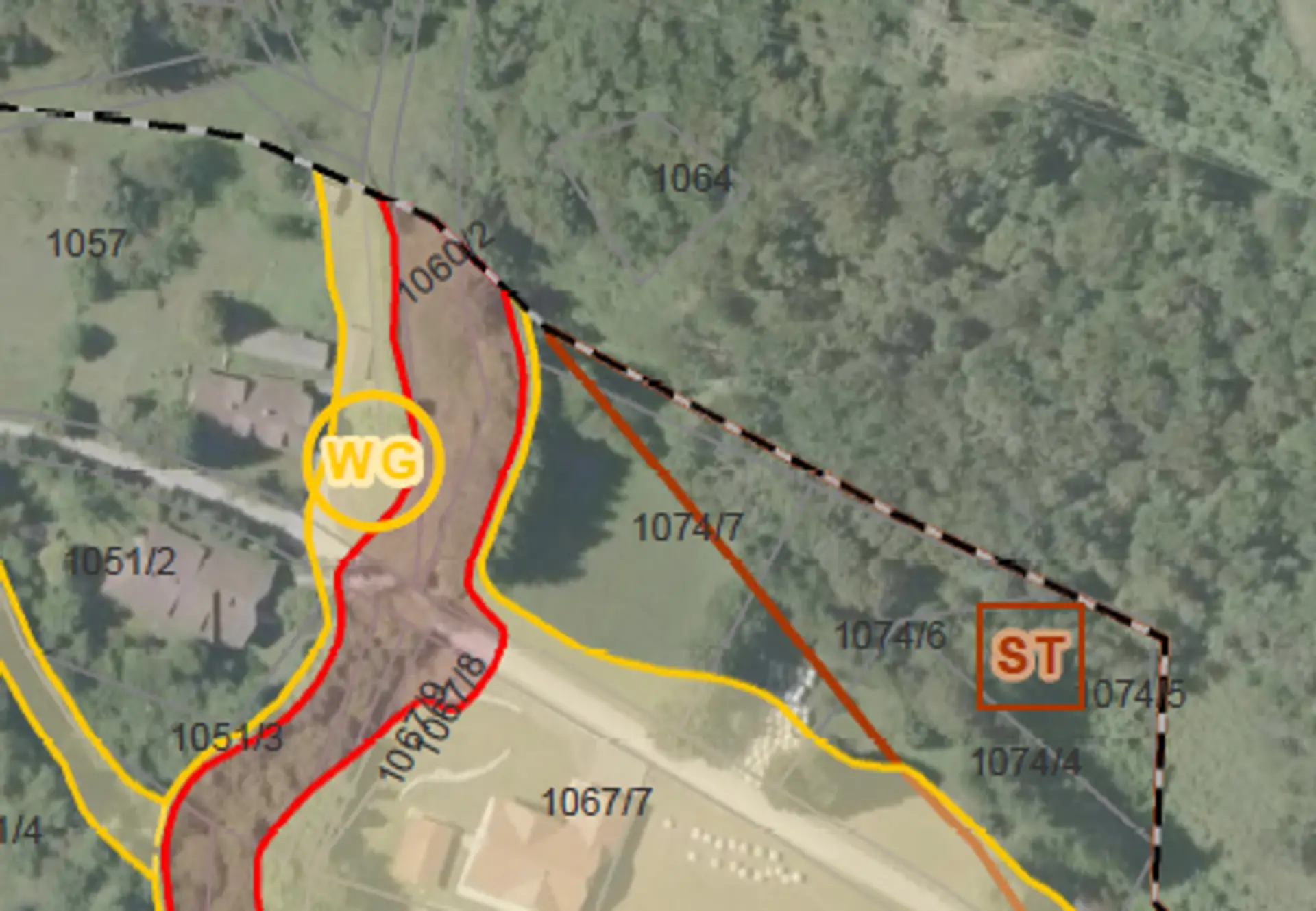 * Widmung: Bauland-Wohngebiet und Wald