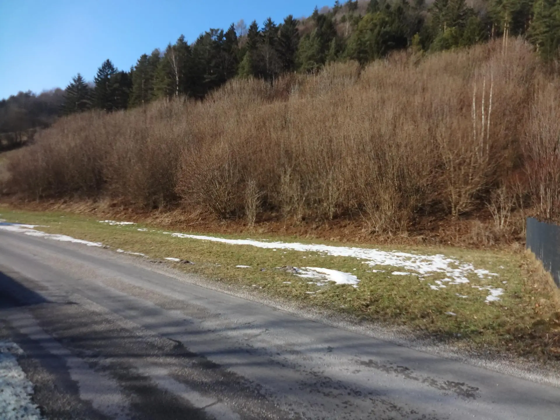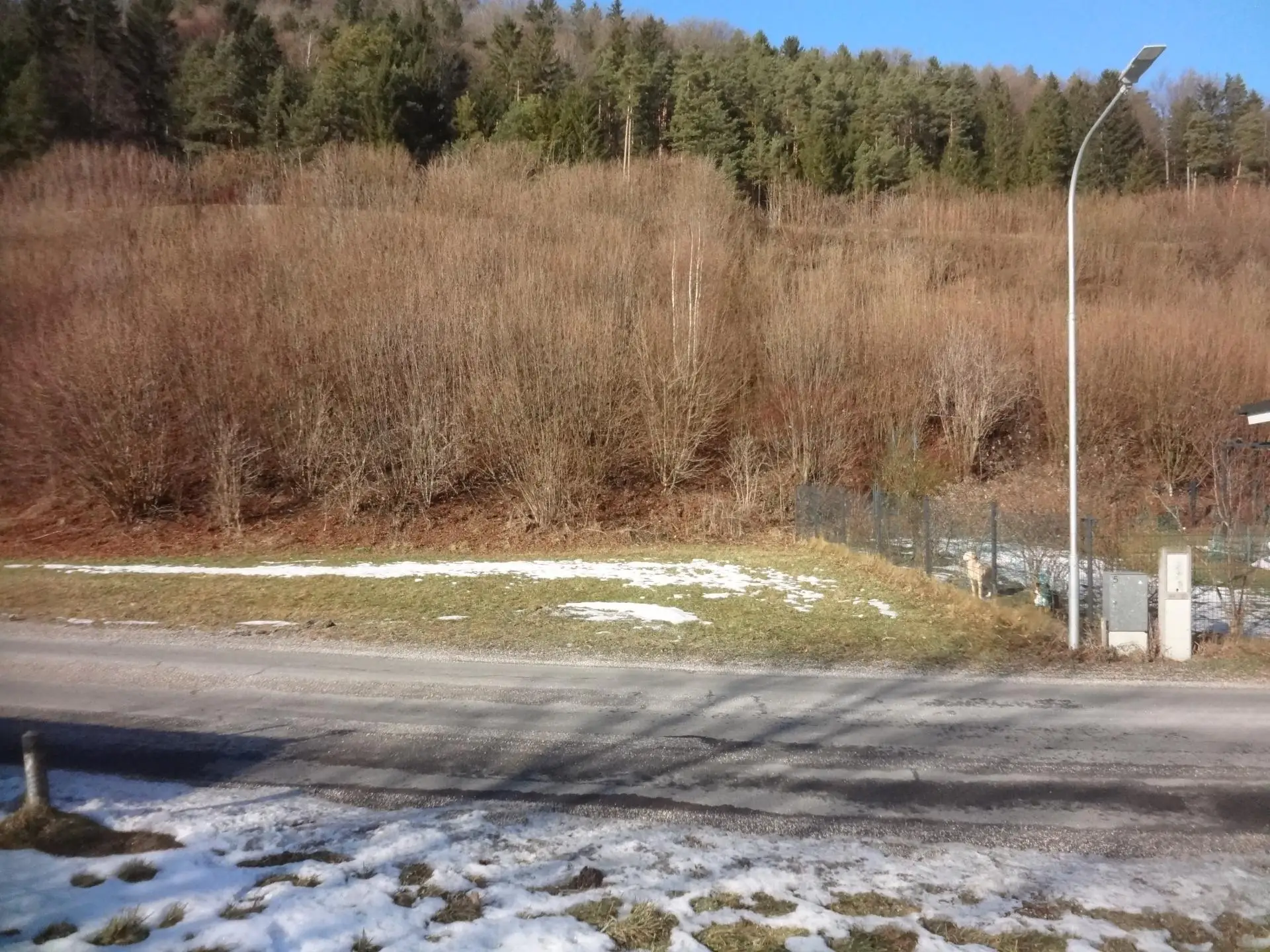 Leistbares Grundstück mit ca. 332 m² Baulandanteil, restlicher Bereich ist ein Hang mit Buschwerk.