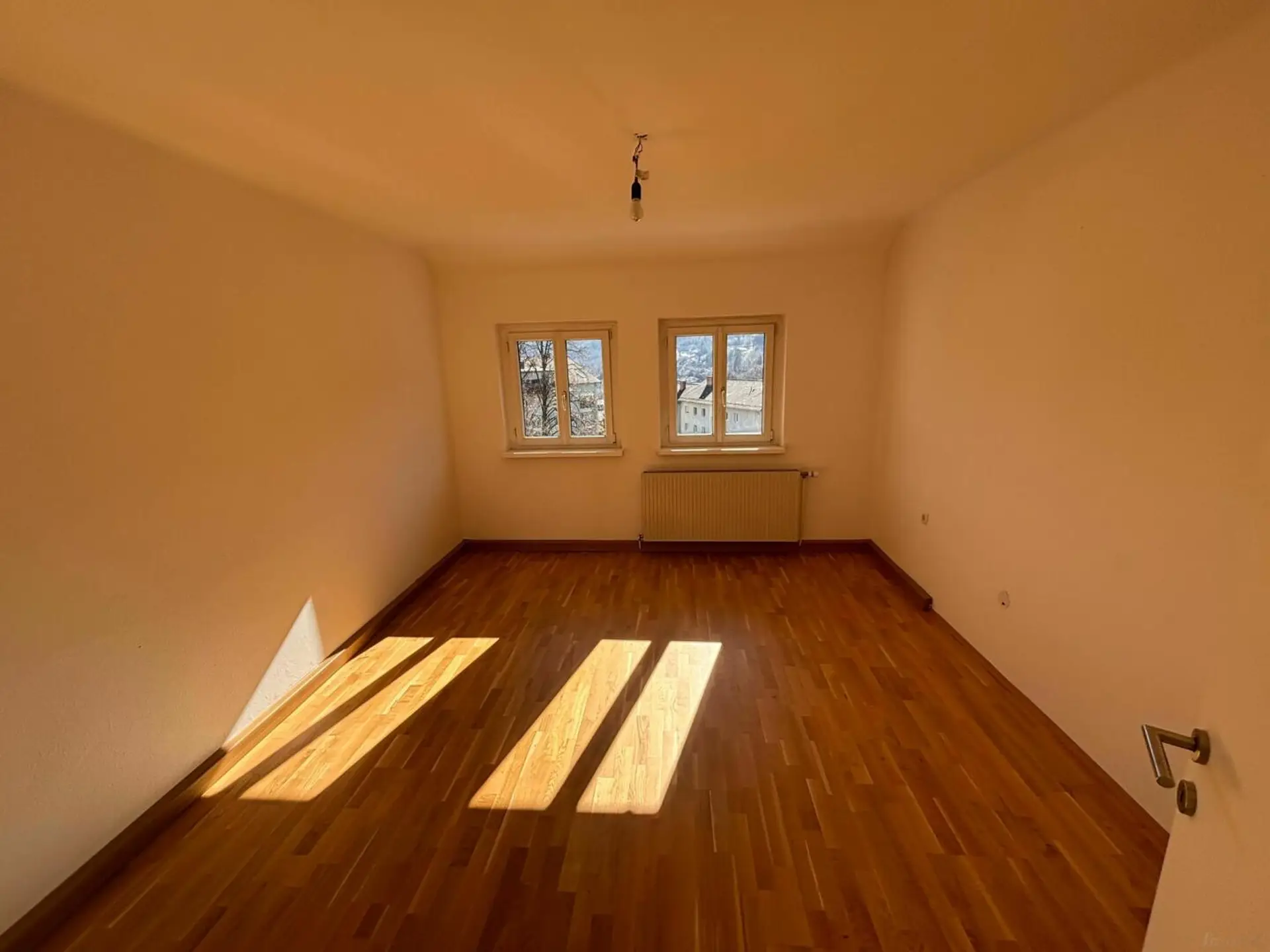 Küche/Esszimmer, Vorraum, Bad mit Dusche, WC, 2 Zimmer und kleiner Abstellraum, rund 60m2, alles komplett um 638,92 € pro Monat.