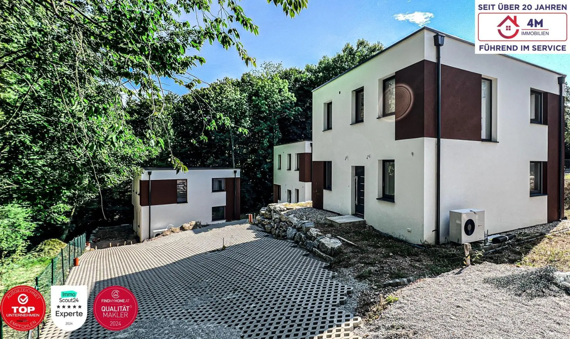 Zum Verkauf stehen vier moderne Einfamilienhäuser in Baumeisterqualität, eingebettet in eine ruhige, grüne Siedlungslage direkt am Waldrand. Diese Wohnanlage vereint naturnahes Wohnen mit einer hervorragenden Anbindung: Die Wiener Innenstadt ist in ca. 35 Fahrminuten erreichbar, Tulln an der Donau in rund 20 Minuten und Klosterneuburg in etwa 15 Minuten. Ländliche Ruhe trifft hier auf urbane Nähe.