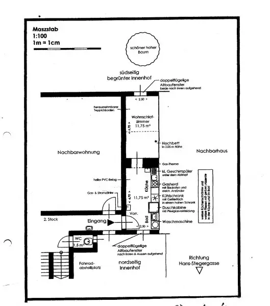 (gerne beraten wir, wie das WC in die Wohnung verlegt werden kann)