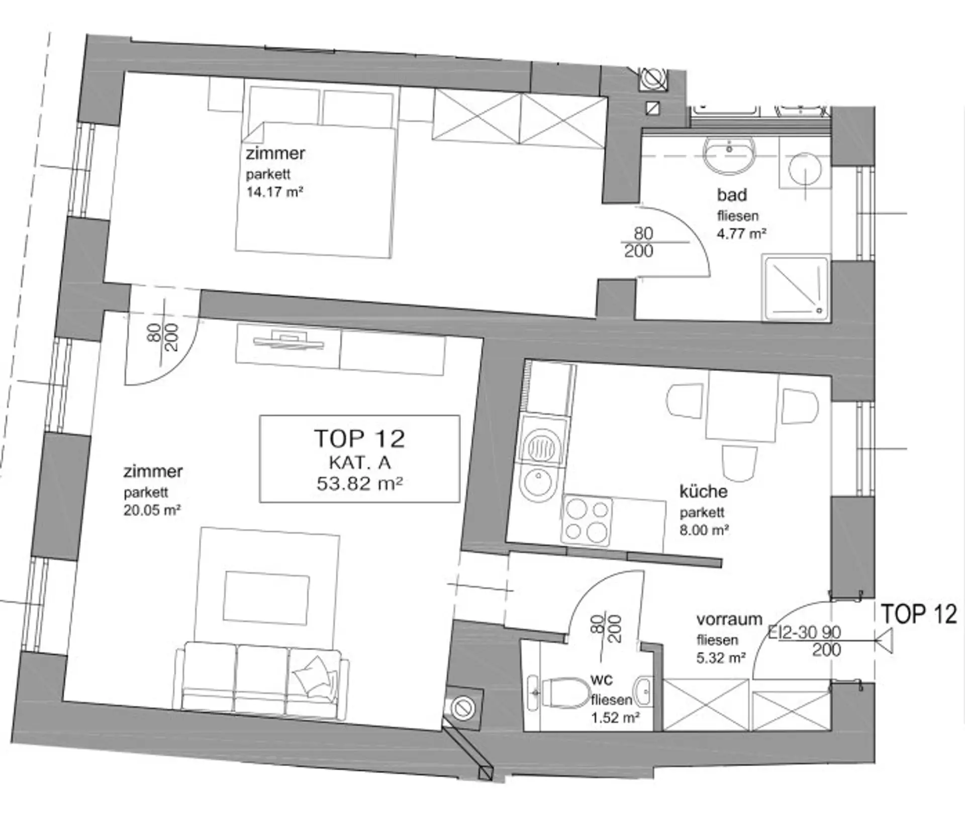 Die Wohnung wird UNMÖBLIERT übergeben (ausgenommen Küche und Badezimmerausstattung)