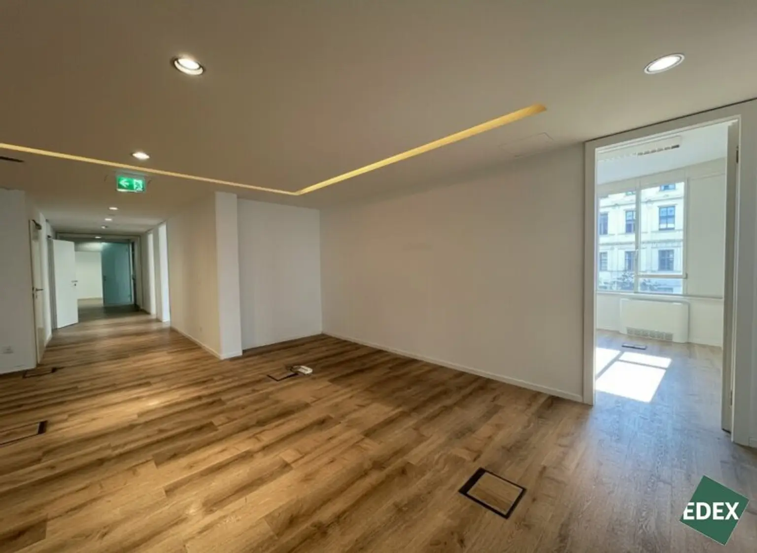 Die effizient und durchdacht konzipierte Bürofläche umfasst derzeit neun Büroräume, von denen sich einer ideal als Besprechungsraum eignet, einen Empfangsbereich, zwei getrennte Sanitärbereiche sowie eine Teeküche. Die Raumaufteilung kann bei Bedarf an die individuellen Anforderungen und das Nutzungskonzept des zukünftigen Mieters angepasst werden.