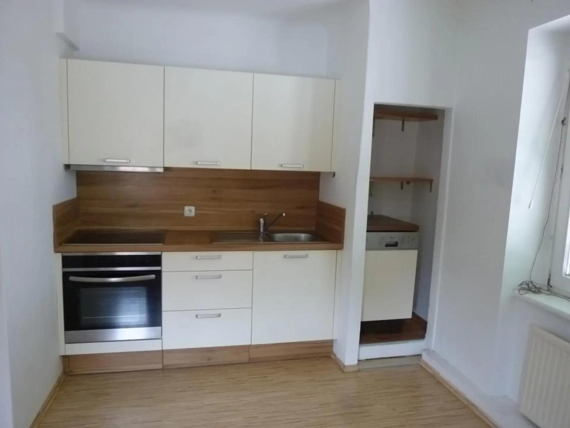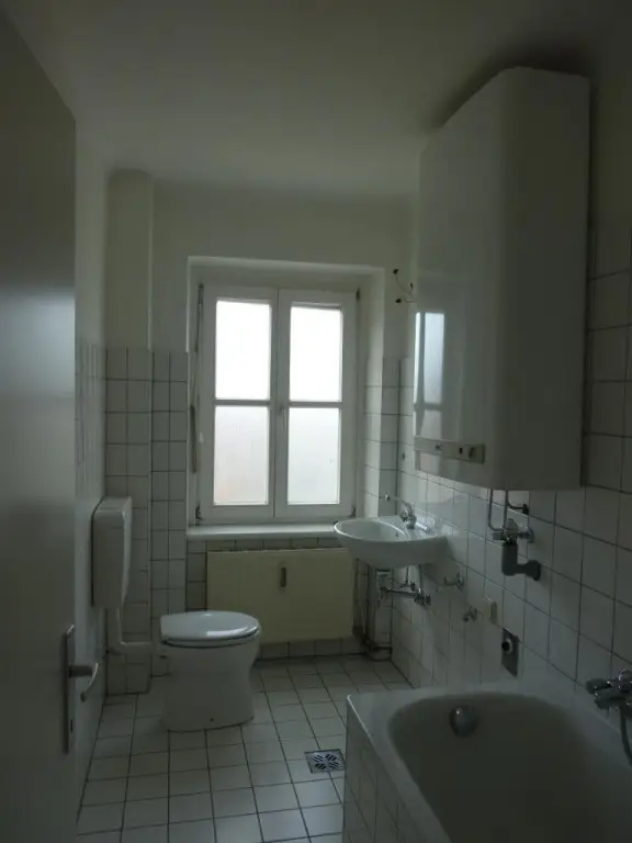 Vorraum, Bad (Wanne, Waschmaschinenanschluss, Warmwasserboiler, Fenster) mit WC, Küche mit Essplatz, 2 Zimmer