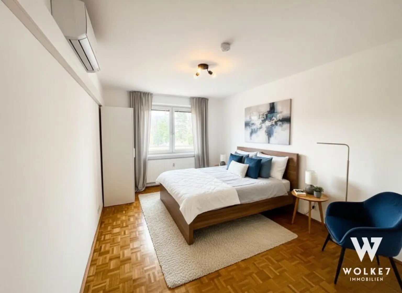 Der helle Wohnbereich mit Parkettboden in allen Wohnräumen bietet ausreichend Platz für einen gemütlichen Wohn- und Essbereich. Besonders hervorzuheben ist die separate, voll ausgestattete Küche, die funktional gestaltet ist und genügend Raum zum Kochen und Verstauen bietet.