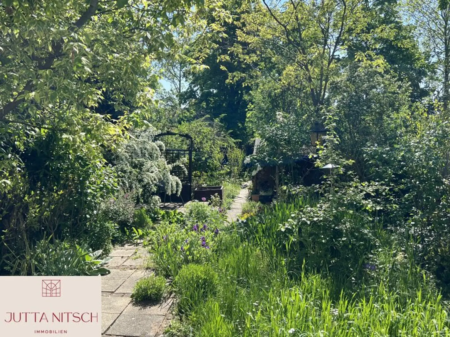 Im individuellen Naturgarten steht Ihnen ein praktischer Geräteschuppen zur Verfügung.