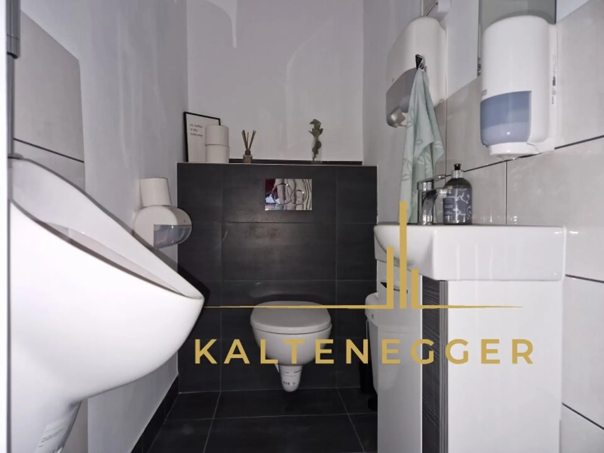 Im Zwischenstock befindet sich ein WC mit Pissoir und ein Waschbecken.