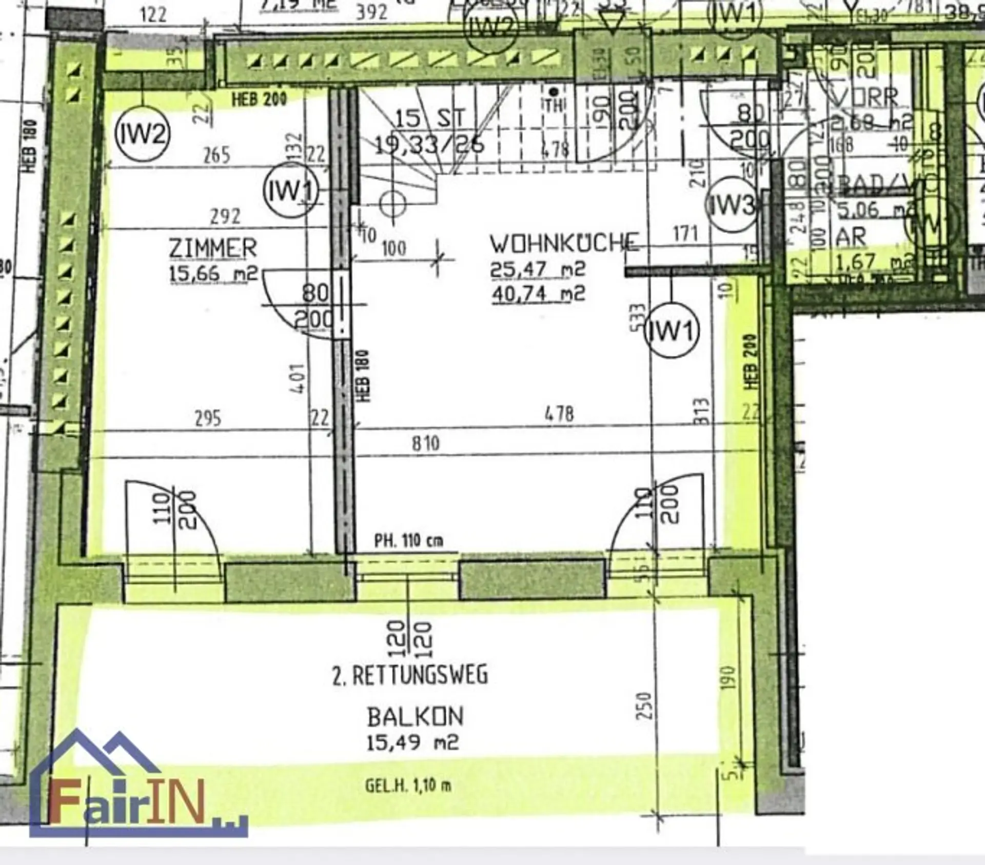 * Ca. 15,49 m² große Balkon