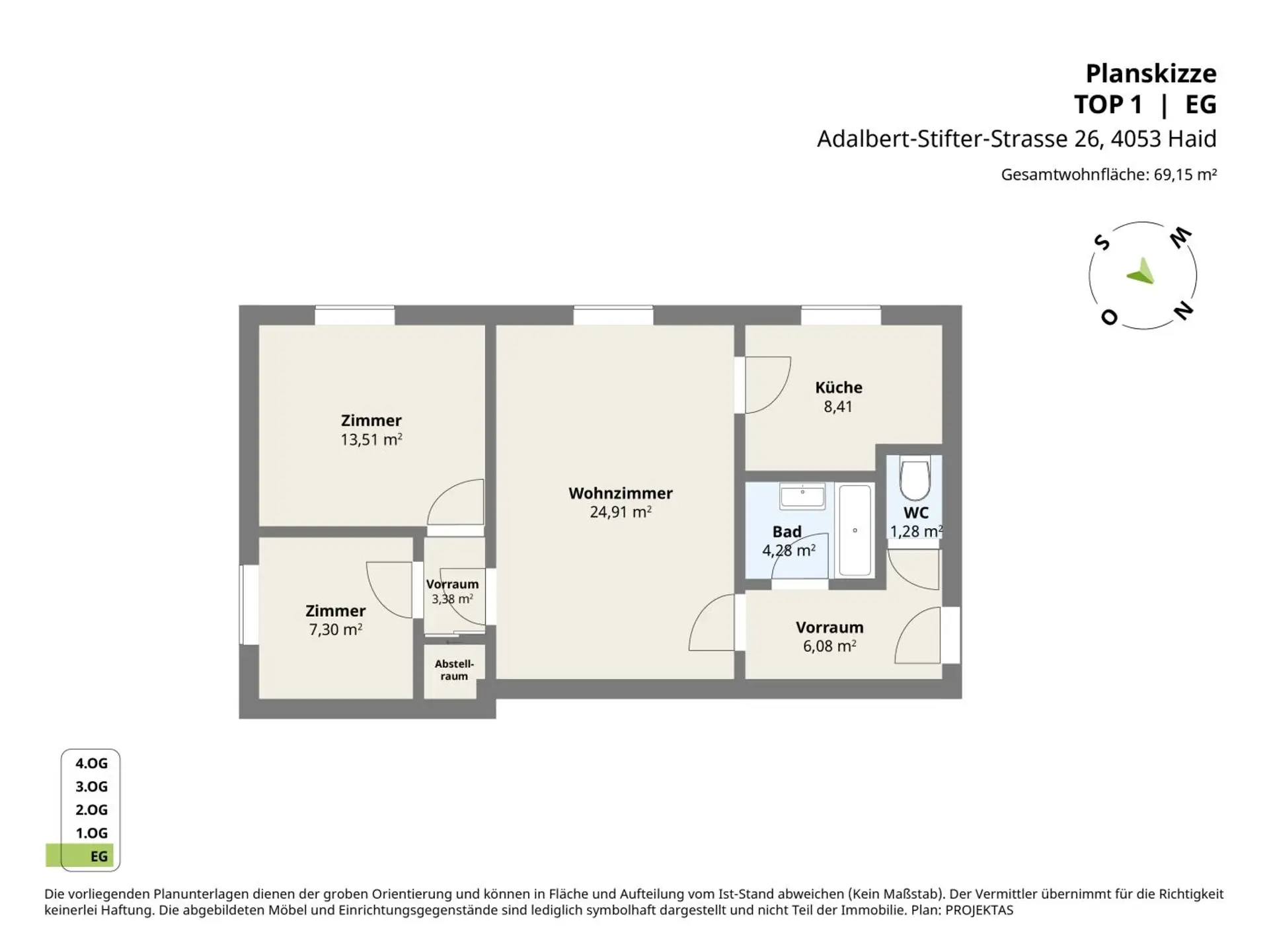 Raumaufteilung der Top 1: