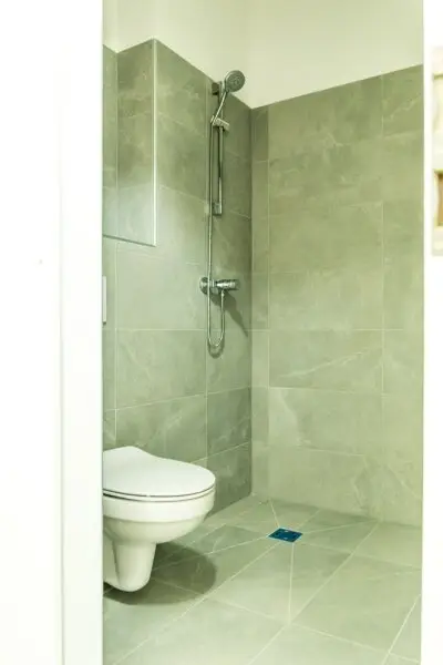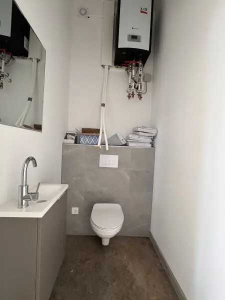 * Die moderne Teeküche bietet Platz für die Zubereitung von Snacks und Getränken, während eine Dusche für den nötigen Komfort nach einem aktiven Arbeitstag sorgt. Auch im Erdgeschoss ist ein WC mit Waschbecken vorhanden.