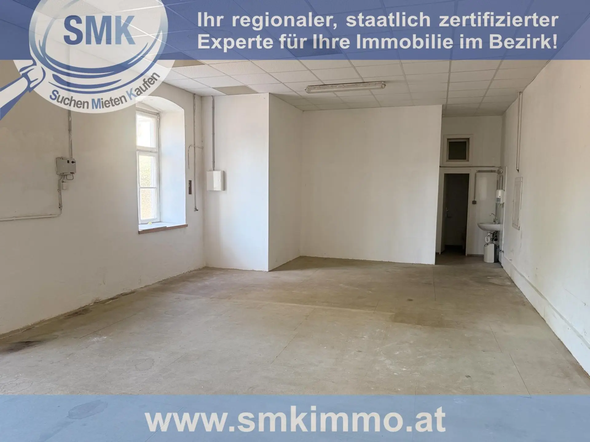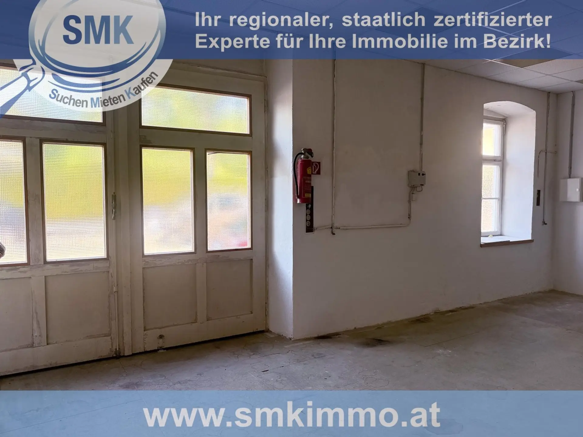 Die Halle hat ein großes ebenerdiges Einfahrttor und hat ca. 60 m². Auf der anderen Seite durch eine Tür getrennt befindet sich das ca. 50 m² große Büro von wo es auch einen eigenen Eingang gibt.