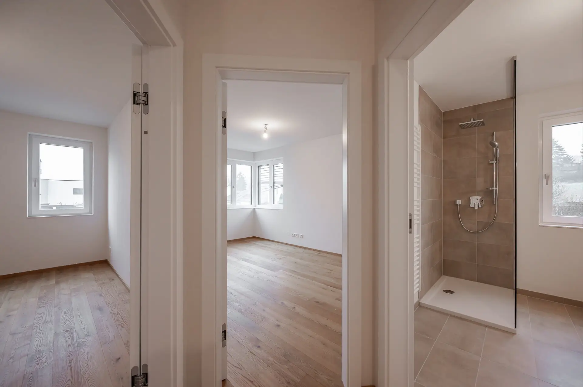 Die Umgebung bietet eine hohe Lebensqualität: Zahlreiche traditionelle Heurigenbetriebe, Golfplätze sowie vielfältige Einkaufs- und Freizeitmöglichkeiten sorgen für Abwechslung und Genuss im Alltag. Spazier- und Radwege beginnen praktisch vor der Haustür und laden zum Durchatmen ein.