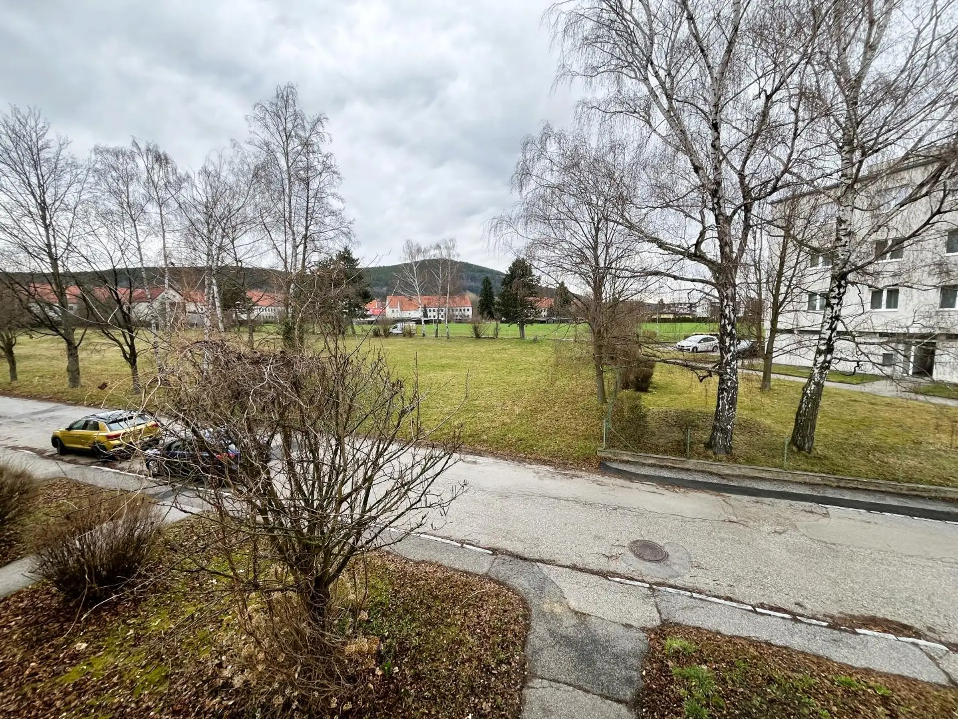 Im näheren Wohnumfeld liegen Wohnhausanlagen, Einfamilienhäuser, vor allem aber grüne Wiesen und Felder.