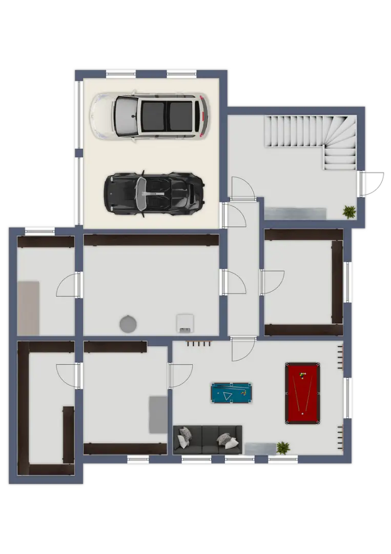 Das Haus ist voll unterkellert und verfügt über insgesamt vier Räume, die flexibel als Lager-, Hobby- oder Arbeitsräume genutzt werden können. Eine Doppelgarage sorgt dafür, dass Sie Ihre Fahrzeuge komfortabel direkt am Haus parken können.