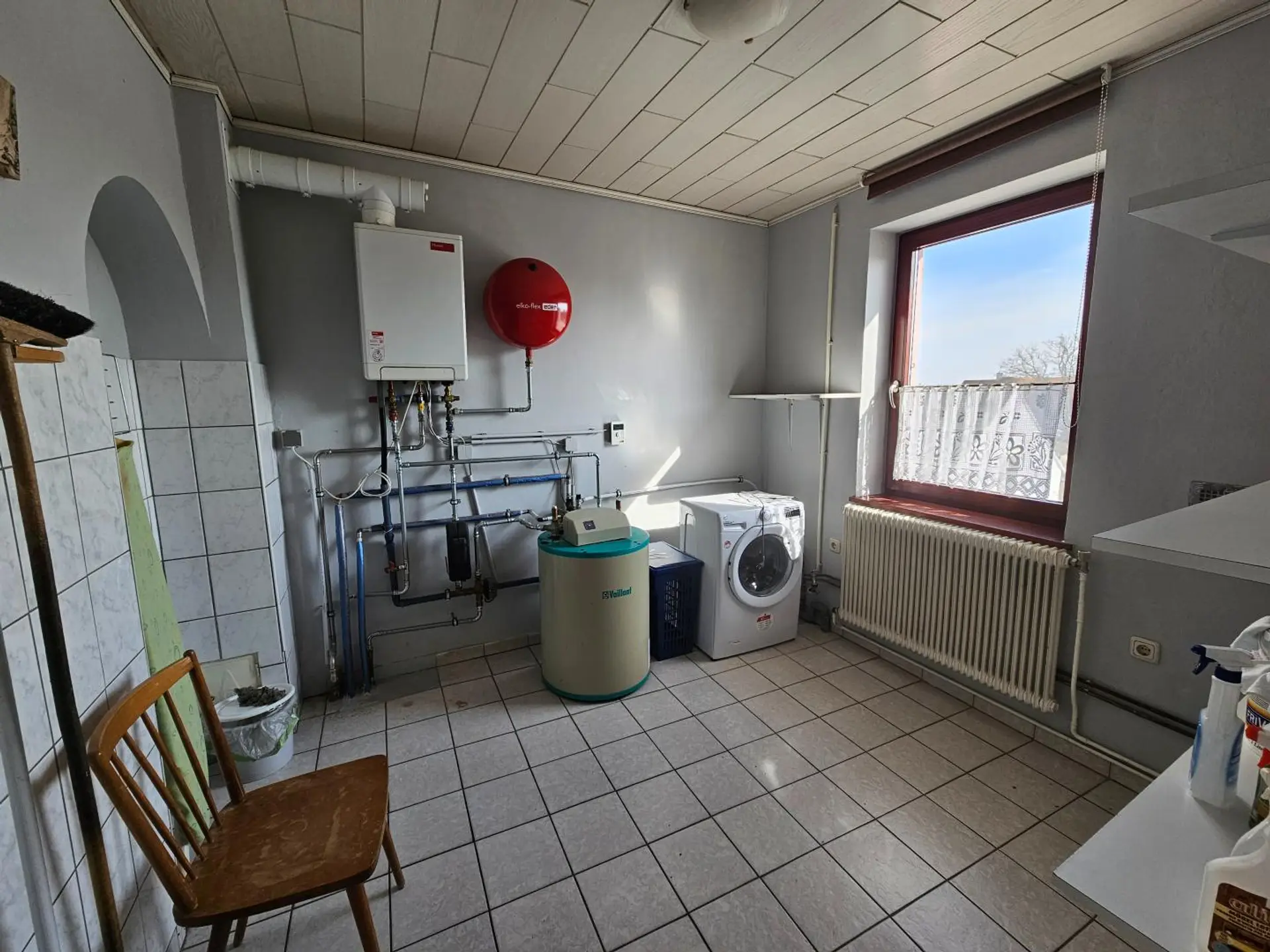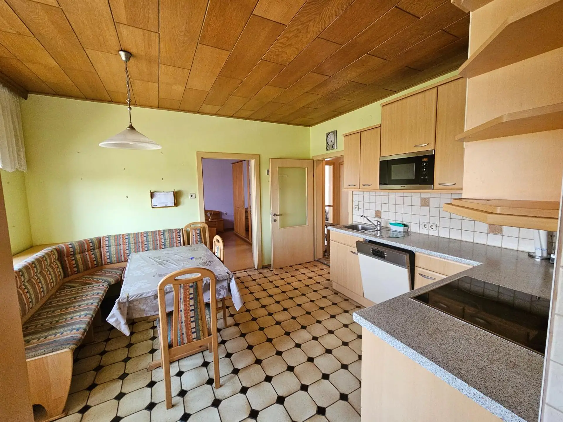 Im Obergeschoß findet man Küche, Wirtschaftsraum, Abstellraum, WC, Bad mit Dusche und 4 Zimmer.