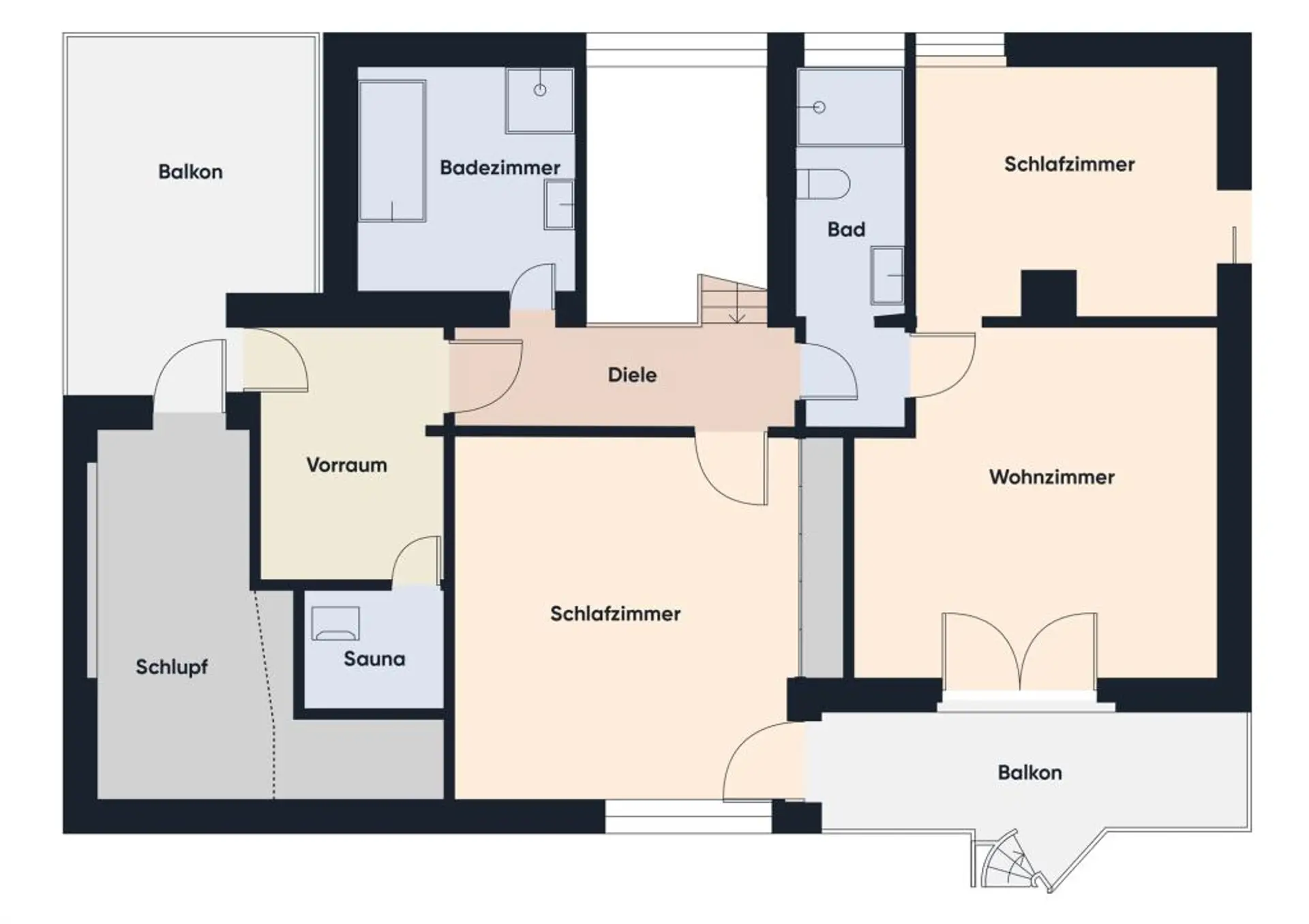 Im Obergeschoss erwartet Sie ein weitläufiges Schlafzimmer, ein Badezimmer sowie eine eigene Sauna mit Ruheraum und uneinsehbarer Terrasse – ein privater Wellnessbereich für Entspannung zu jeder Zeit. Ebenfalls im Obergeschoss befindet sich die separate Einliegerwohnung mit zwei Zimmern und eigenem Badezimmer, die über einen eigenen Zugang sowie eine Verbindungstür verfügt und somit flexibel genutzt werden kann.