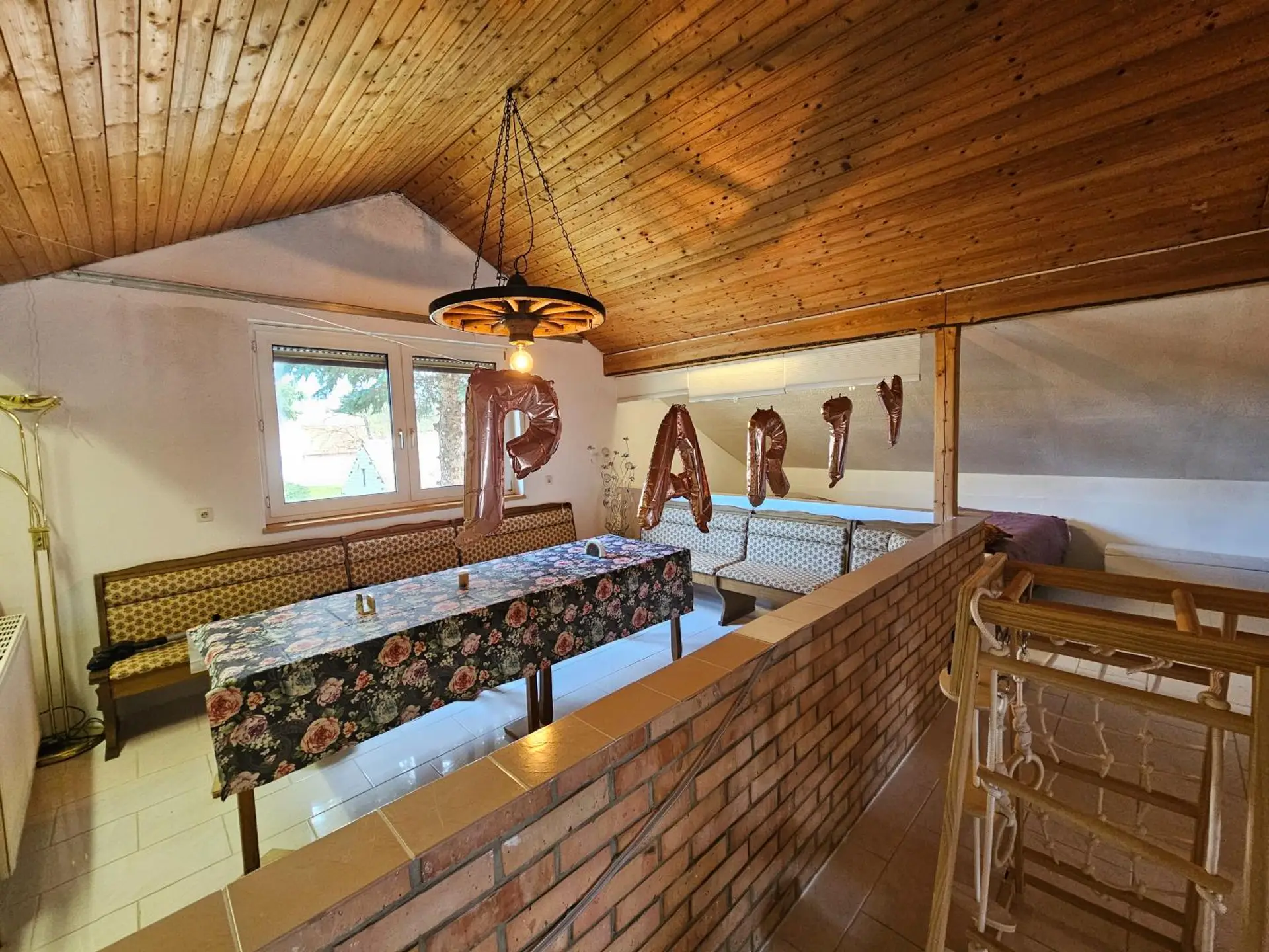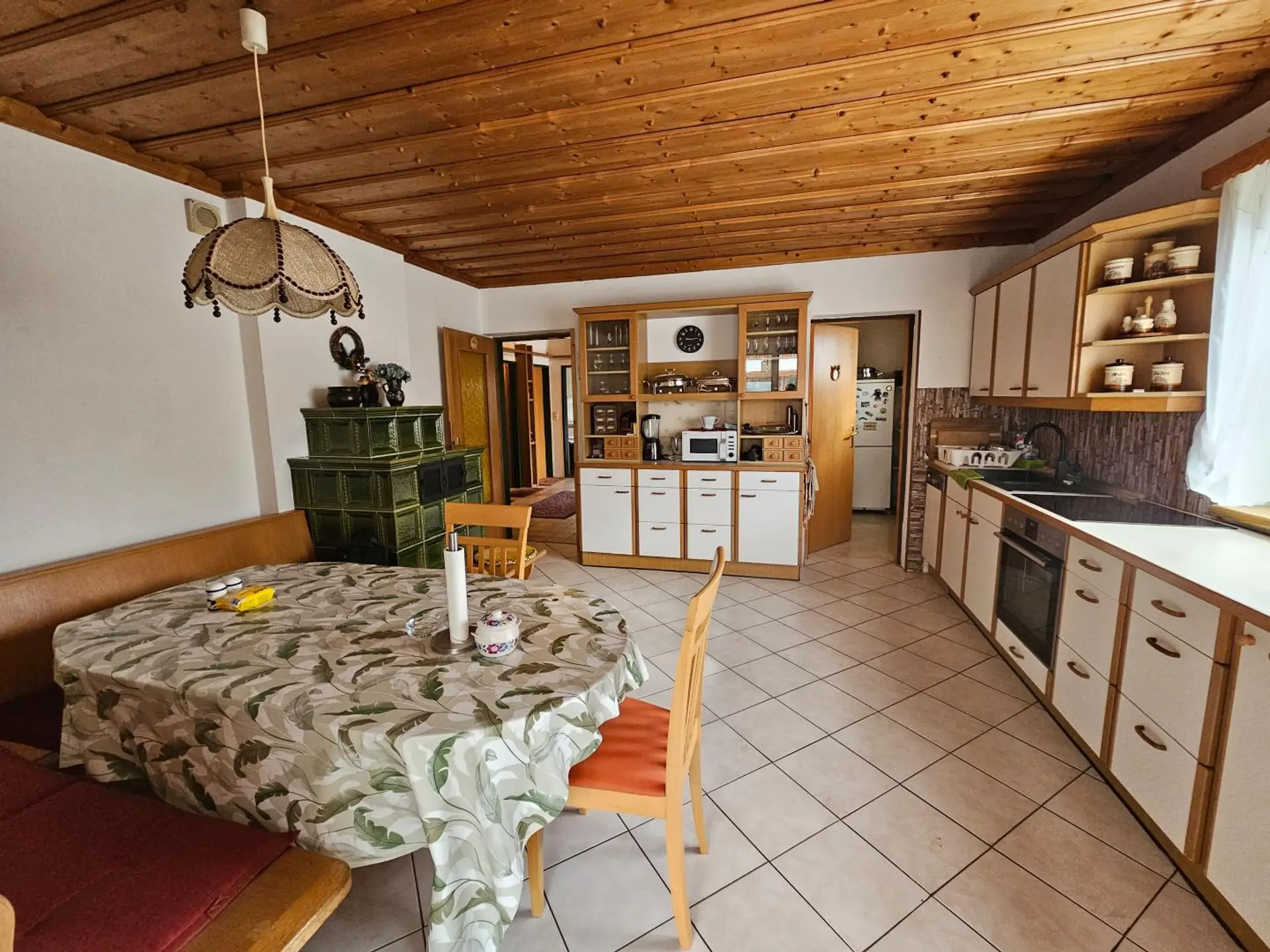 Erdgeschoß (Wohnnutzfläche ca. 115 m² - siehe Plan bei Fotos): Vorraum, Küche mit Kachelofen, Speis, Wohnzimmer, 2 Zimmer, Bad und WC. Vom Vorraum kommt man in die Garage, den Keller und das Dachgeschoß.
