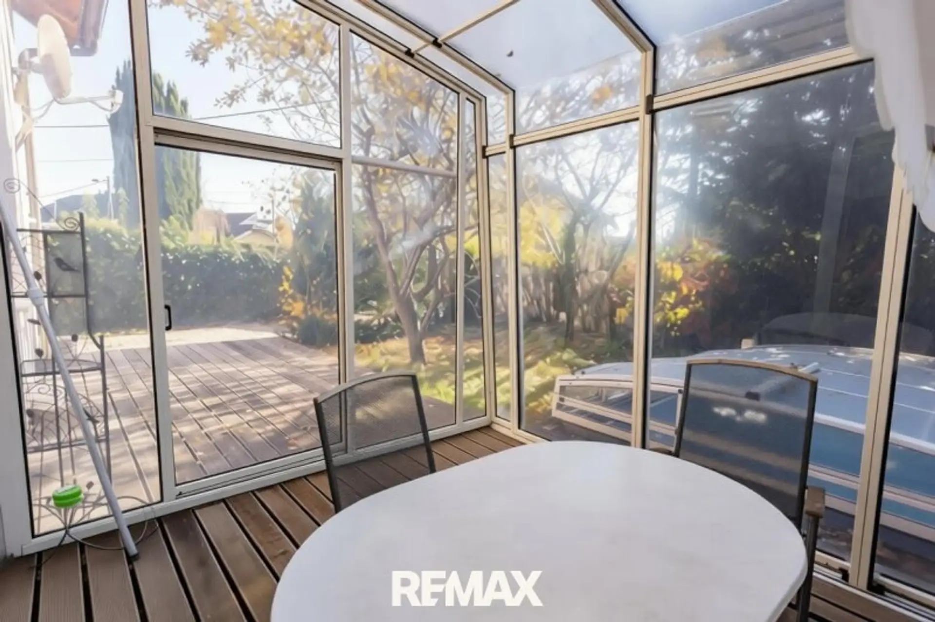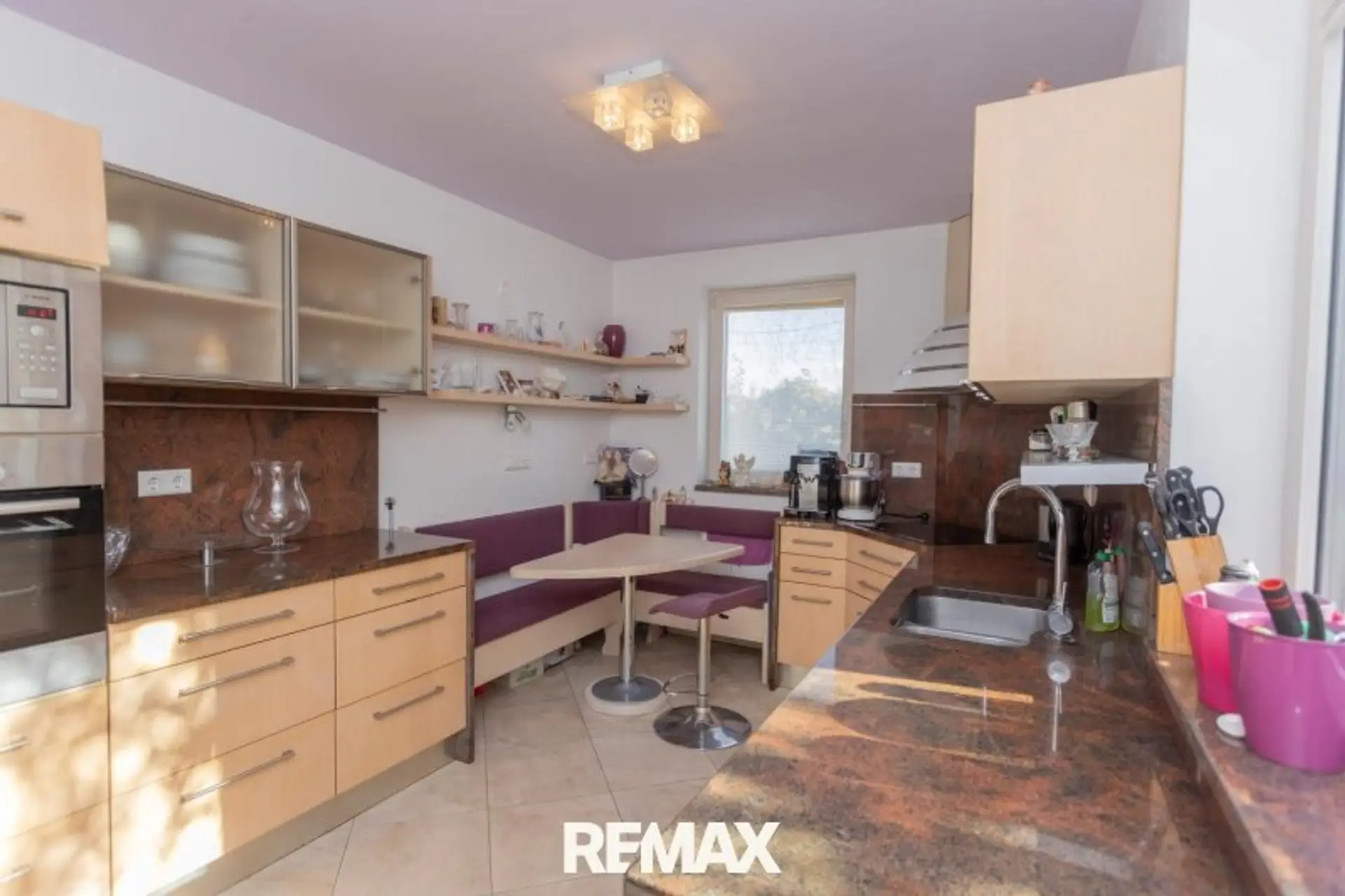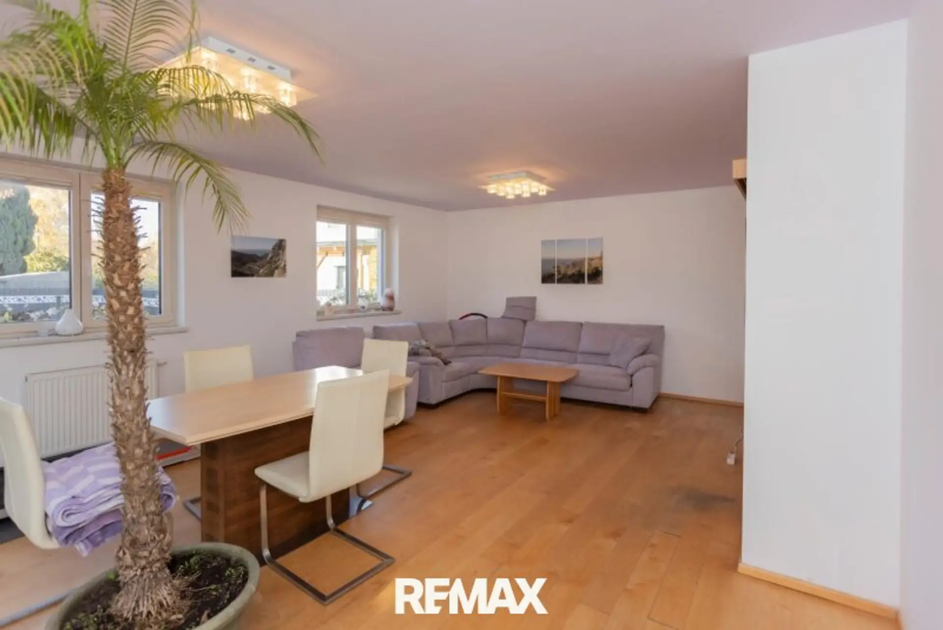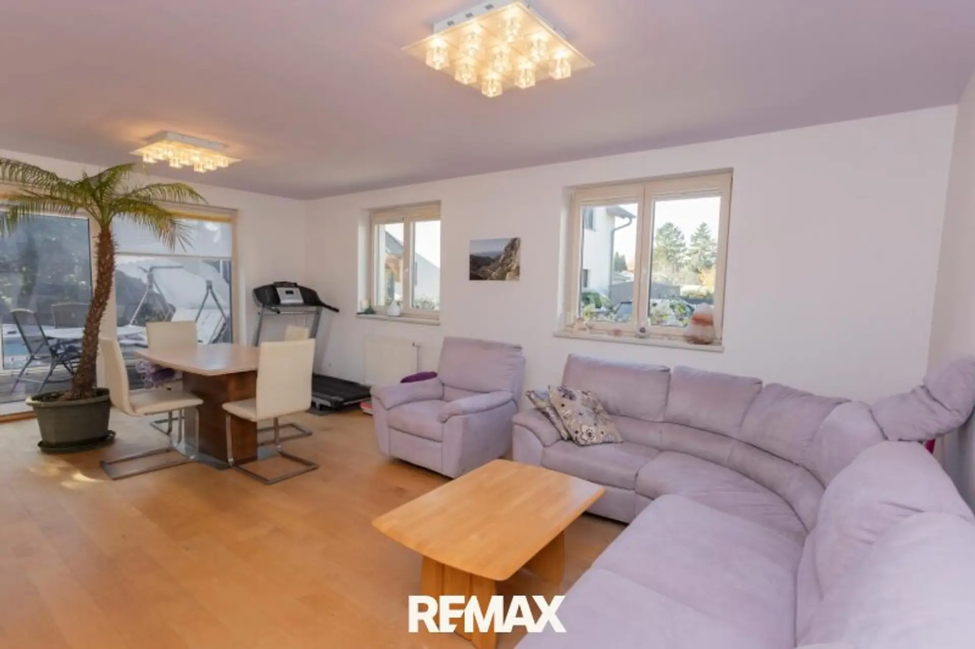 Über den zentralen Vorraum gelangen Sie in das ca. 30 m² große Wohnzimmer und die ca. 14 m² offene Küche. Der Wohnraum verfügt auch über einen Zugang zu Wintergarten, Terrasse und Garten mit Pool. Auf dieser Ebene finde Sie auch noch ein Bad mit Dusche und WC.