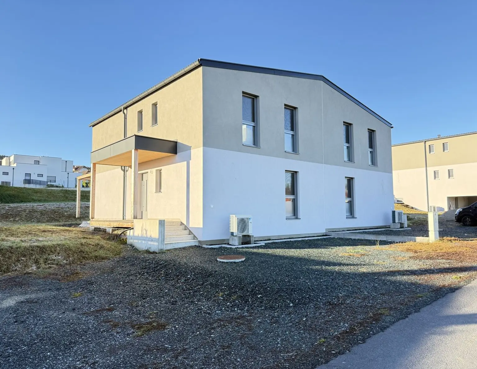 Willkommen in deinem neuen Zuhause! Dieses moderne Doppelhaus in Rotenturm an der Pinka könnte schon bald dein neues Zuhause werden. Kürzlich erbaut, überzeugt es durch seinen neuwertigen Zustand und bietet auf zwei Eta…