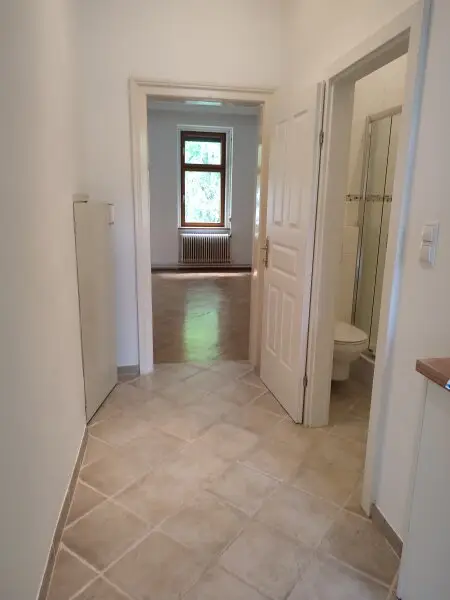 Vorzimmer, Küche, Wohnzimmer, Schlafzimmer, weiteres Zimmer, Bad mit Dusche u. WC, Abstellraum mit Waschmaschinen-Anschluss.