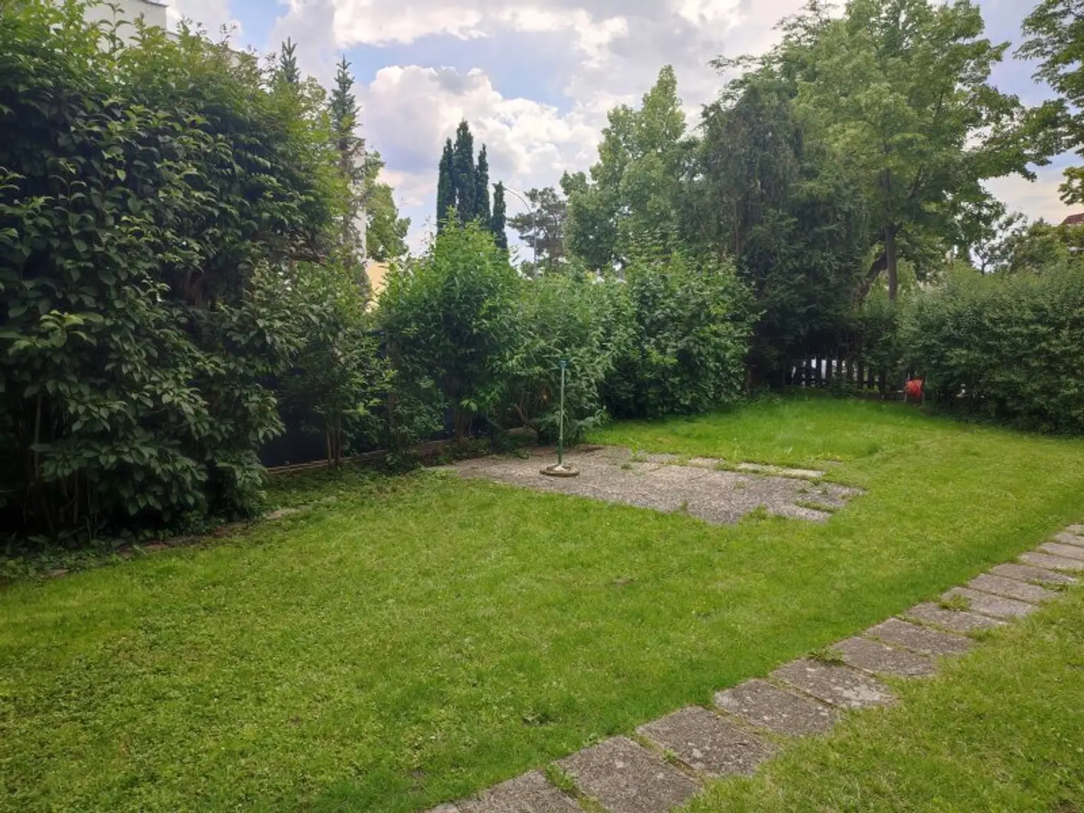sonnigem Garten & Kellerbereich.