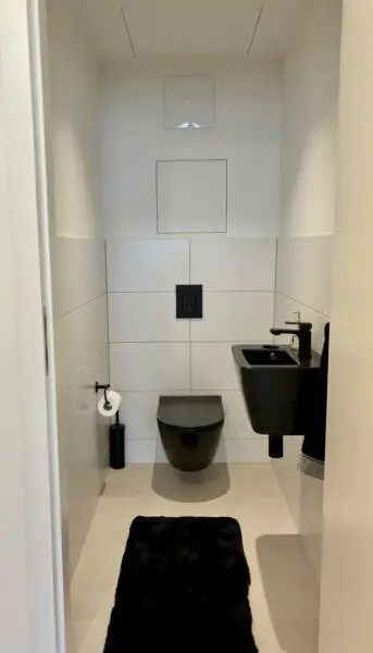 Stauraum und Platz für Waschmaschiene und Trockner findet sich im Hauswirtschaftsraum. Eine Gäste WC befindet ist zudem vom Vorraum aus begehbar.
