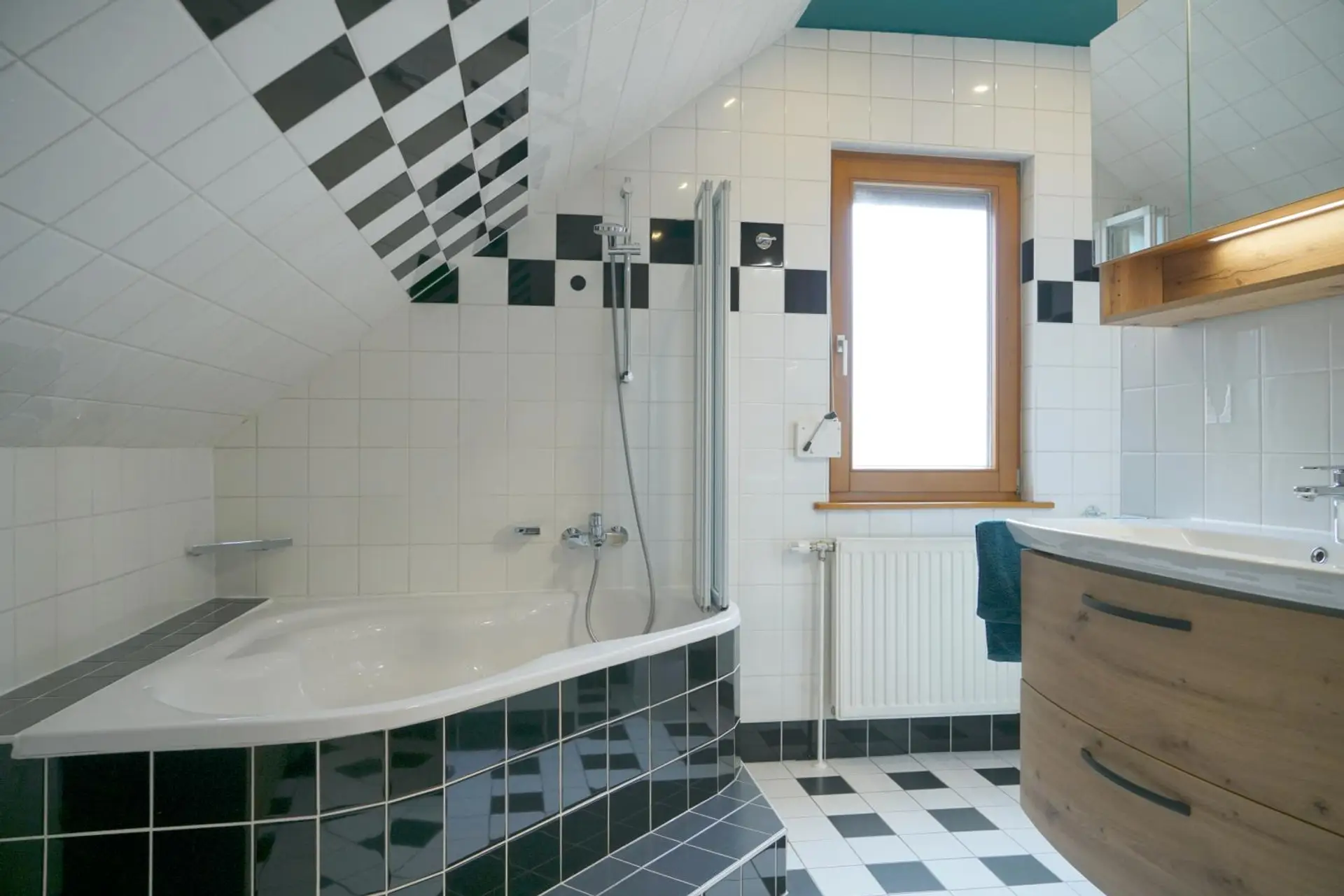- Badezimmer Obergeschoß: Möbel und Armaturen (Grohe) erneuert