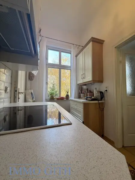 Über den Vorraum gelangt man in das separate WC mit Handwaschbecken sowie in das großzügige Wohnzimmer, das zum ruhigen Innenhof ausgerichtet ist und durch viel Tageslicht besticht. Von hier aus führen zwei Wege weiter: auf der einen Seite in das Schlafzimmer, das zur ruhigen Seitengasse orientiert ist und über einen kleinen Balkon verfügt – perfekt für den ersten Kaffee am Morgen oder einen Moment frischer Luft. Auf der anderen Seite gelangt man in die gepflegte Küche, von der aus das Badezimmer mit Dusche, Bidet und Fenster erreichbar ist – ein angenehmes Detail, das Licht und Frischluft garantiert.