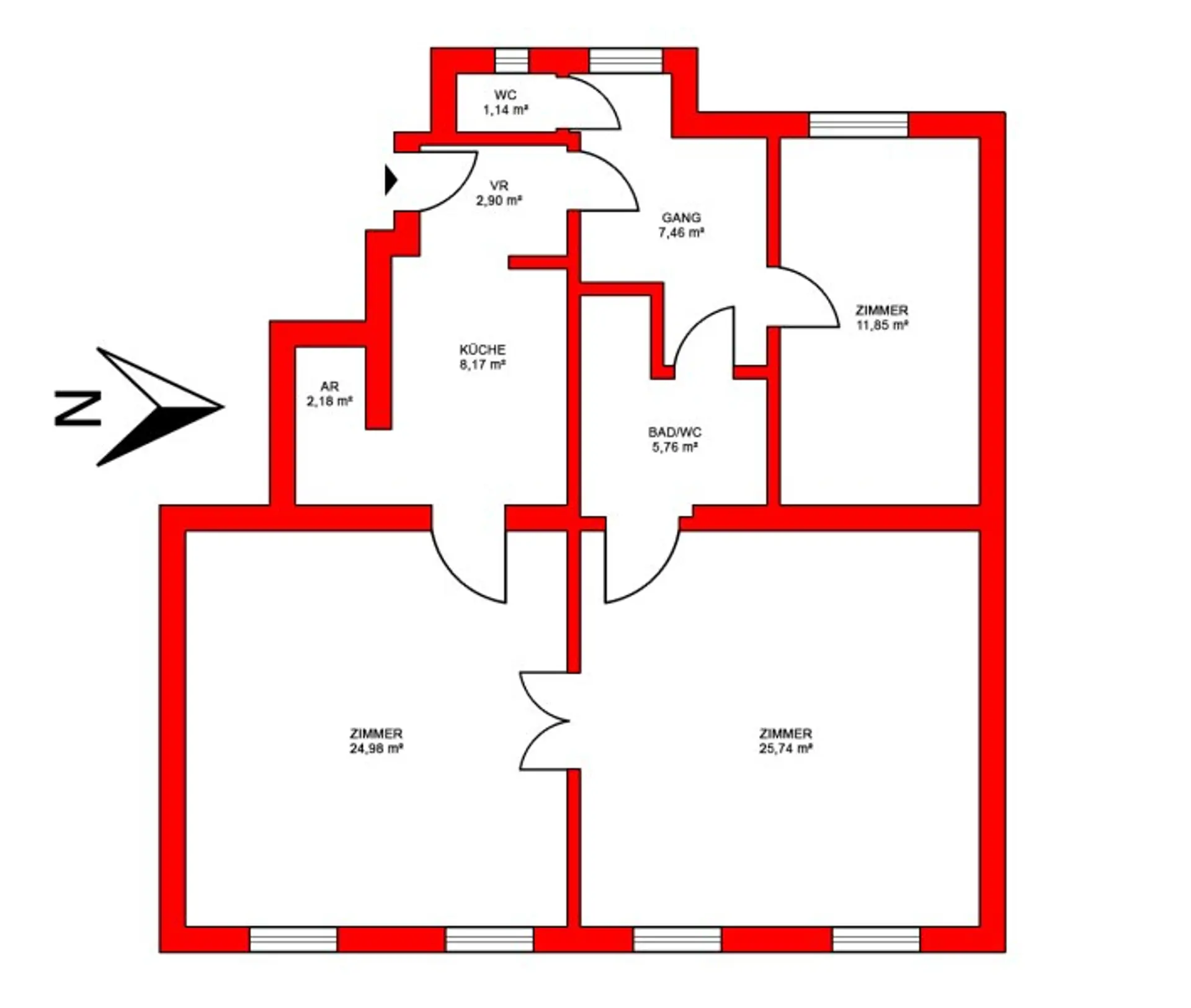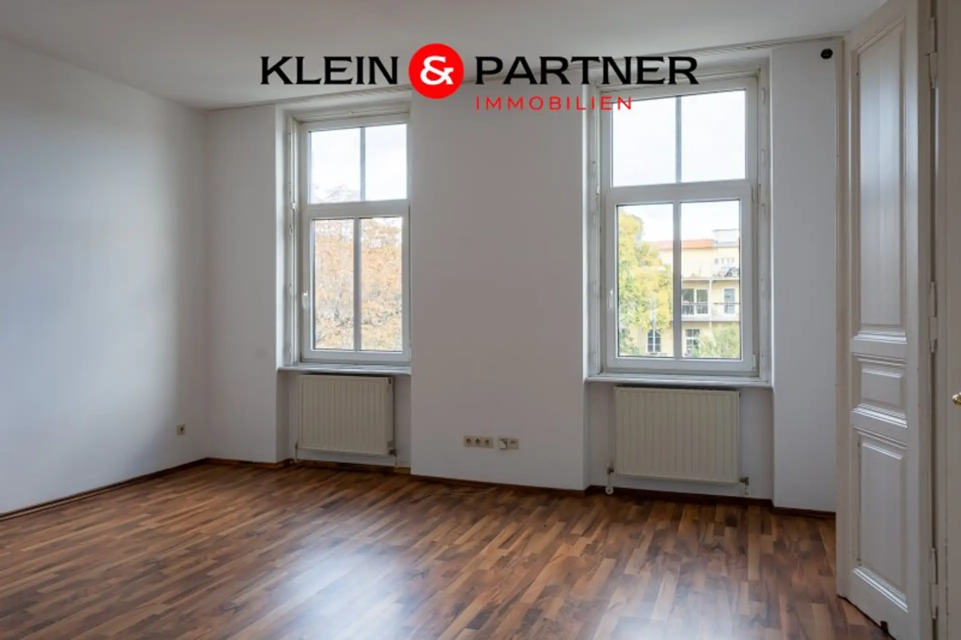In diesem Fall wurden zwei Altbauwohnungen zusammengelegt und renoviert. Daraus ergibt sich ein sehr interessanter, nicht alltäglicher Grundriss. Von einer neu eingerichteten Küche mit "Speis" gelangen Sie in ein großes, ostseitig angelegtes Zimmer. Durch eine schöne, große Flügeltüre betritt man einen baugleichen Raum, der ebenfalls mit zwei ostseitig ausgerichteten Fenstern ausgestattet ist.