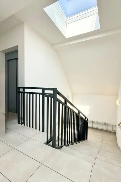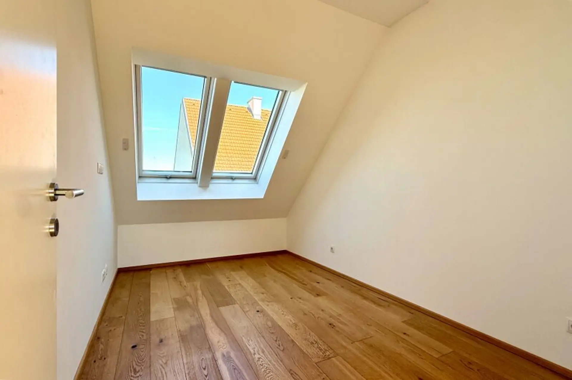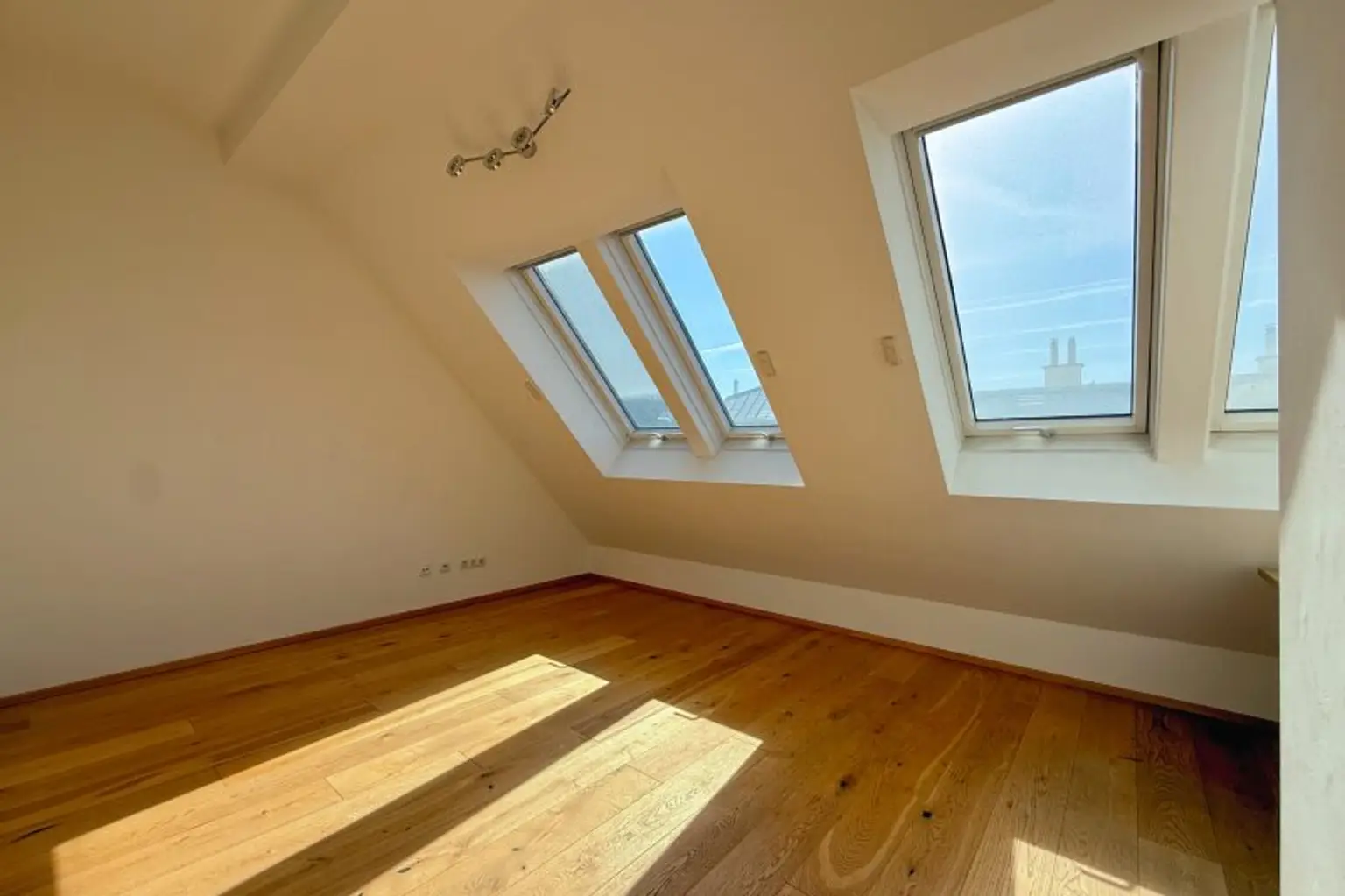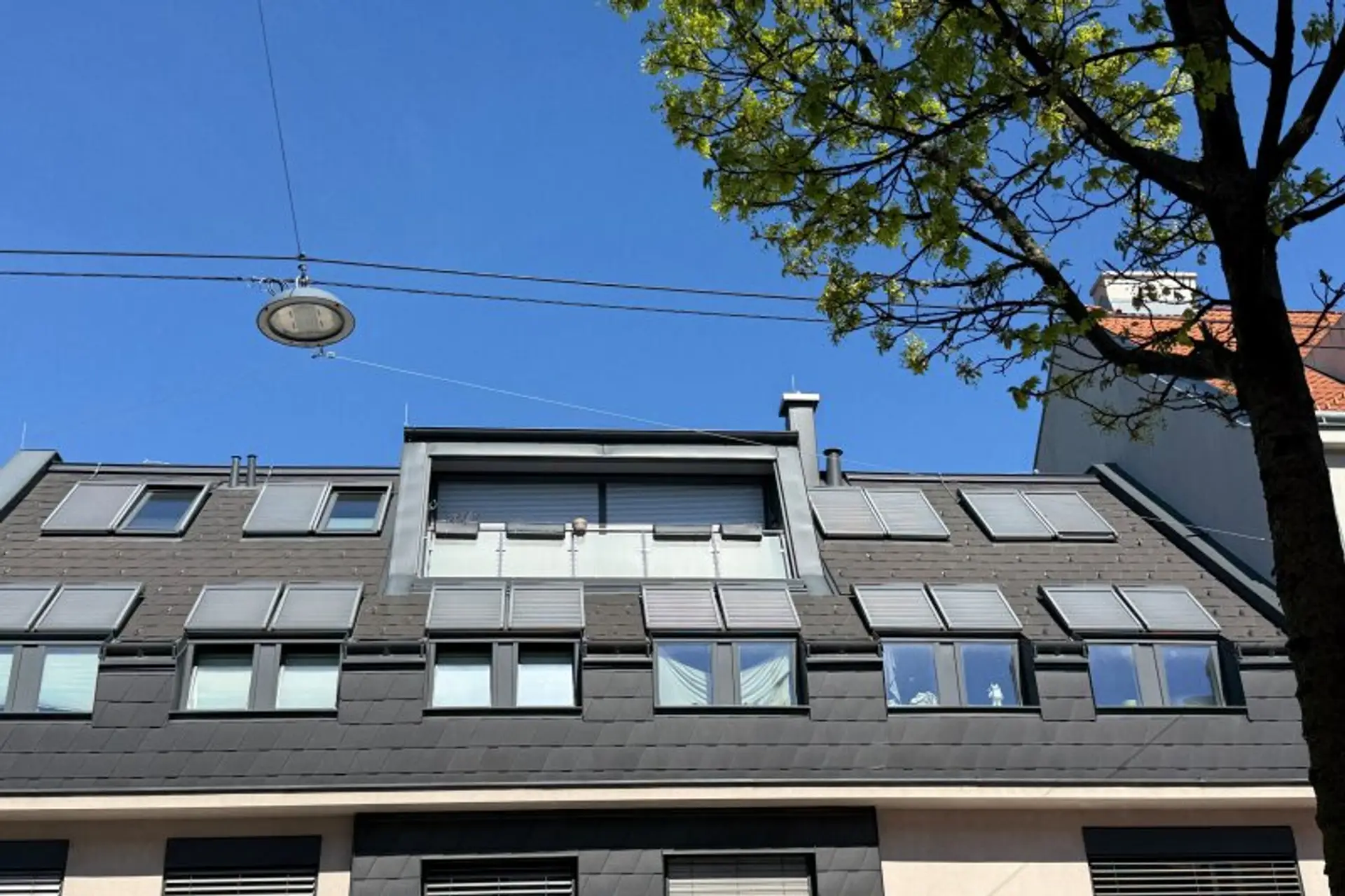 Die Wohnung befindet sich im Dachgeschoß (4. Liftstock) und ist Straßenseitig (Wohnzimmer/Terrasse) und Hofseitig (Badezimmer und Schlafzimmer) ausgerichtet. Über den Eingangsbereich gelangt man direkt in die große Wohnküche, welche optisch in einen Wohnbereich und Küchenbereich mit Platz für den Esstisch, unterteilt ist. Die teilweise überdachte Terrasse (Loggia) erschließt sich über eine große Fensterfläche mit Schiebetür. Das Schlafzimmer und das Badezimmer (mit Dusche und WC) sind separat begehbar. Die Wohnung verfügt über eine elektrisch und einzeln steuerbare Außenbeschattung. Die Böden sind als Parkettböden im Wohnbereich und Fliesen im Nassbereich ausgeführt. Die Wohnung wird unmöbliert, aber mit voll ausgestatteter Küche übergeben.