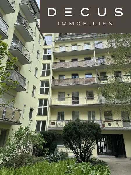 Das Schlafzimmer (ca. 21 m²) sowie die kompakte Küche (ca. 6 m²) orientieren sich hingegen zum ruhigen Innenhof, wodurch hier eine angenehme Wohn- und Schlafatmosphäre gewährleistet ist.