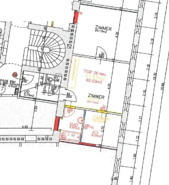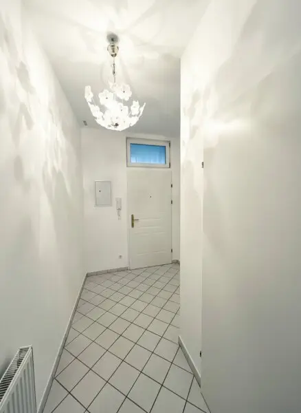 Vom zentralen Vorraum, in dem sich auch das WC befindet, gelangt man direkt in das großzügige Wohn- und Esszimmer, das den Mittelpunkt der Wohnung bildet. Von hier aus sind das Schlafzimmer, das Badezimmer sowie die Küche erreichbar. Diese Aufteilung schafft ein harmonisches, angenehmes Wohngefühl.