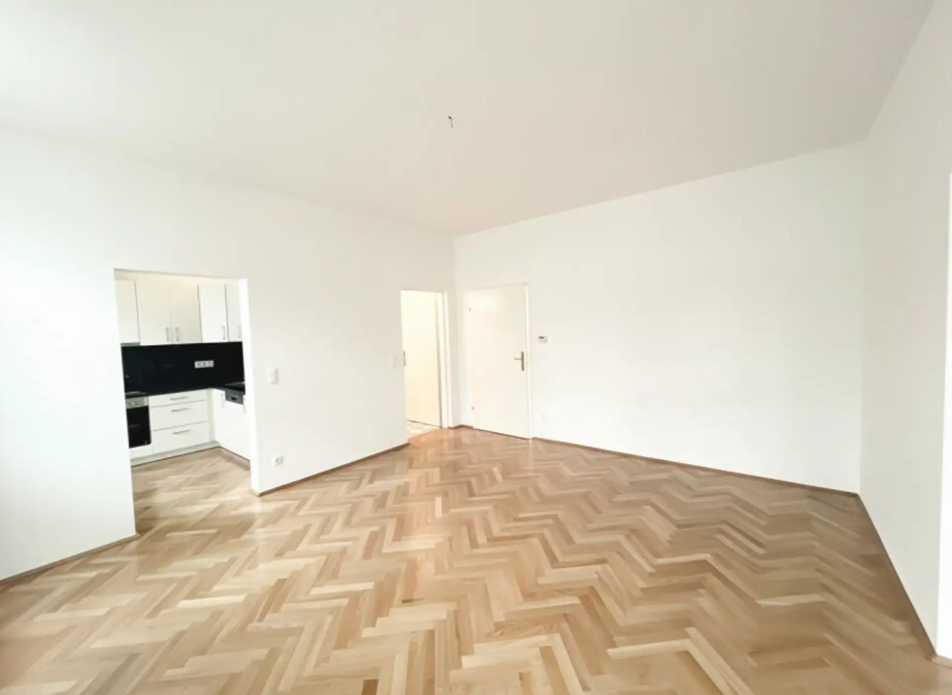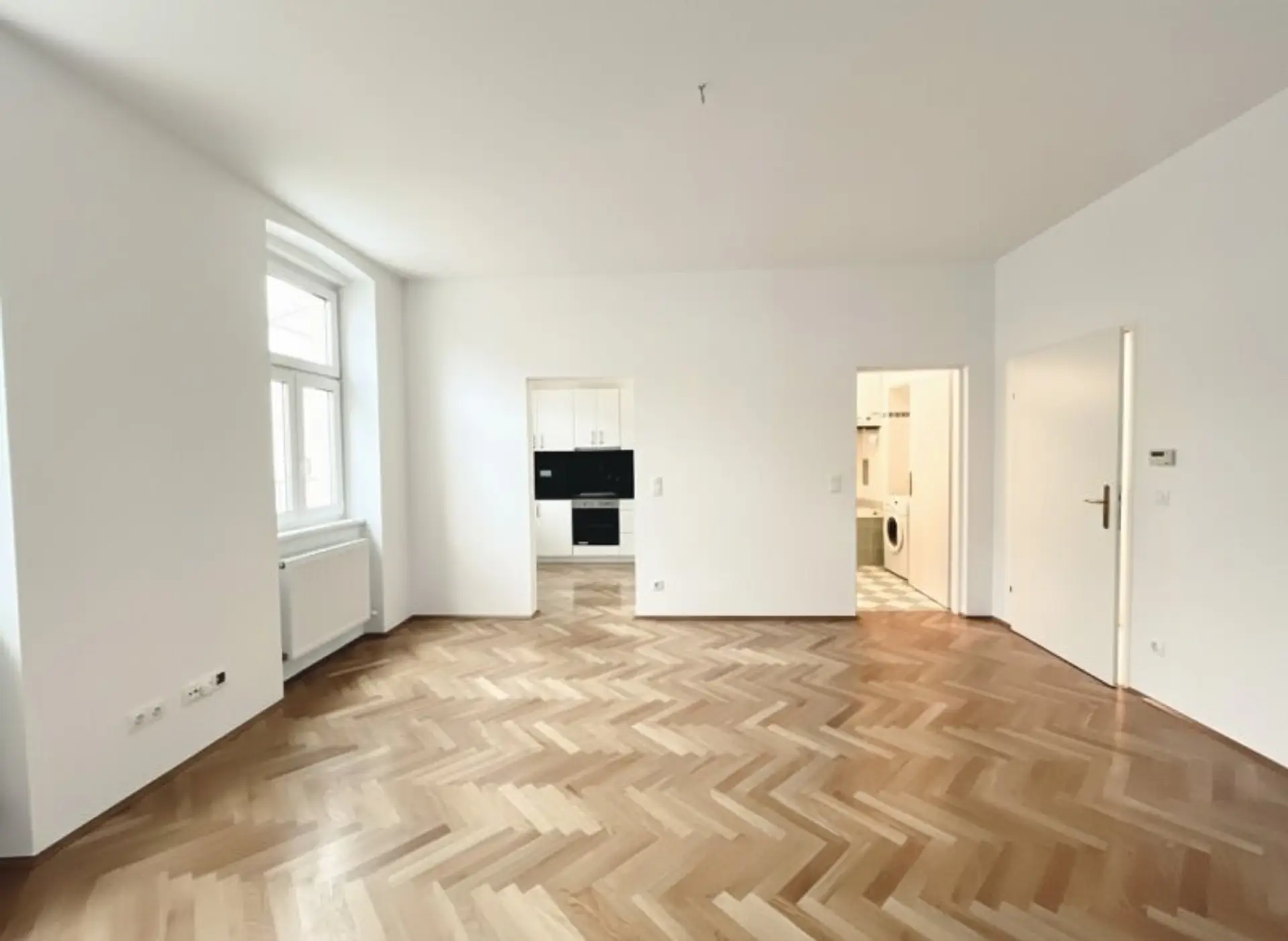 Der edle Fischgrätparkettboden verleiht der Wohnung einen besonderen Charakter und betont den typischen Wiener Altbaustil. Große Fensterflächen sorgen für eine lichtdurchflutete und einladende Atmosphäre in allen Räumen.