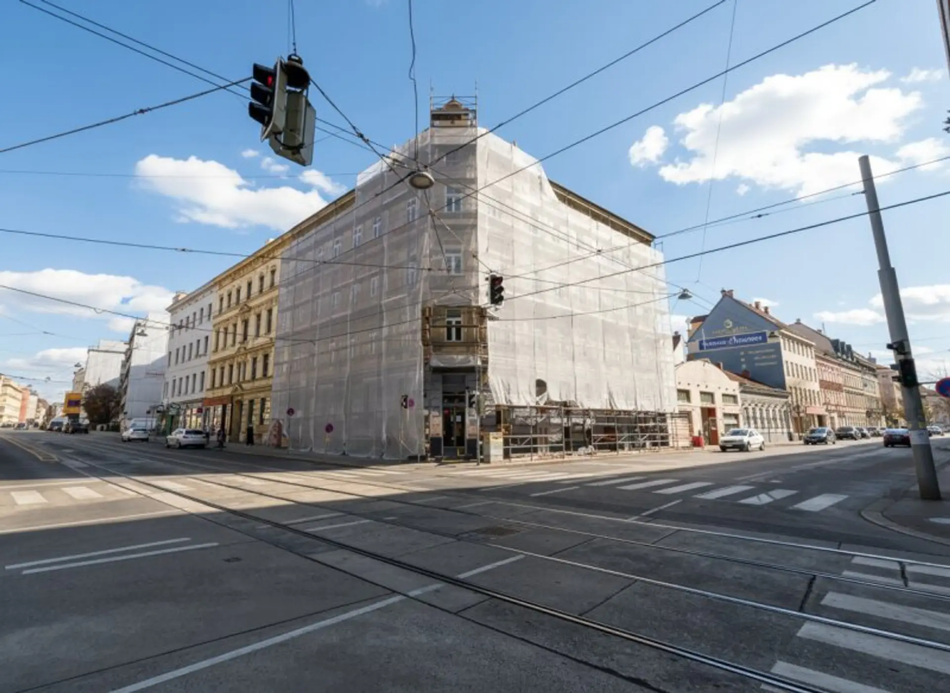 Das Wohnhaus präsentiert sich in sehr gutem Zustand – die Fassade wird derzeit saniert und verleiht dem Gebäude bald ein neues, ansprechendes Erscheinungsbild.