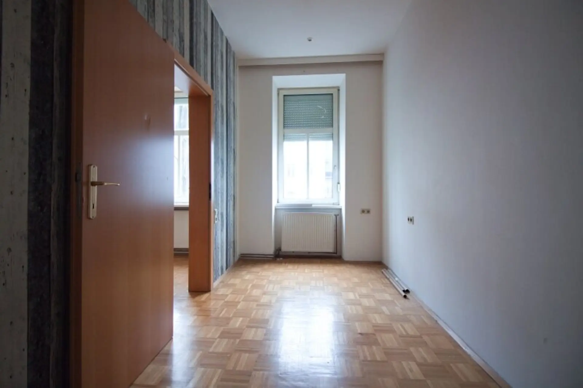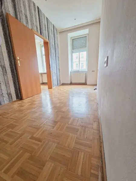Diese 2-Zimmer-Wohnung befindet sich in einem klassischem Altbau im 1. Stock OHNE Lift. Die Wohnung ist in einem brauchbaren Zustand und leerstehend. Der Vorraum verbindet die separate Küche, das WC mit Handwaschbecken, das Bad mit Dusche und das Wohnzimmer. Vom Wohnzimmer aus ist das Schlafzimmer begehbar und alle Räume sind in Richtung Westen zur Vorortelinie ausgerichtet.