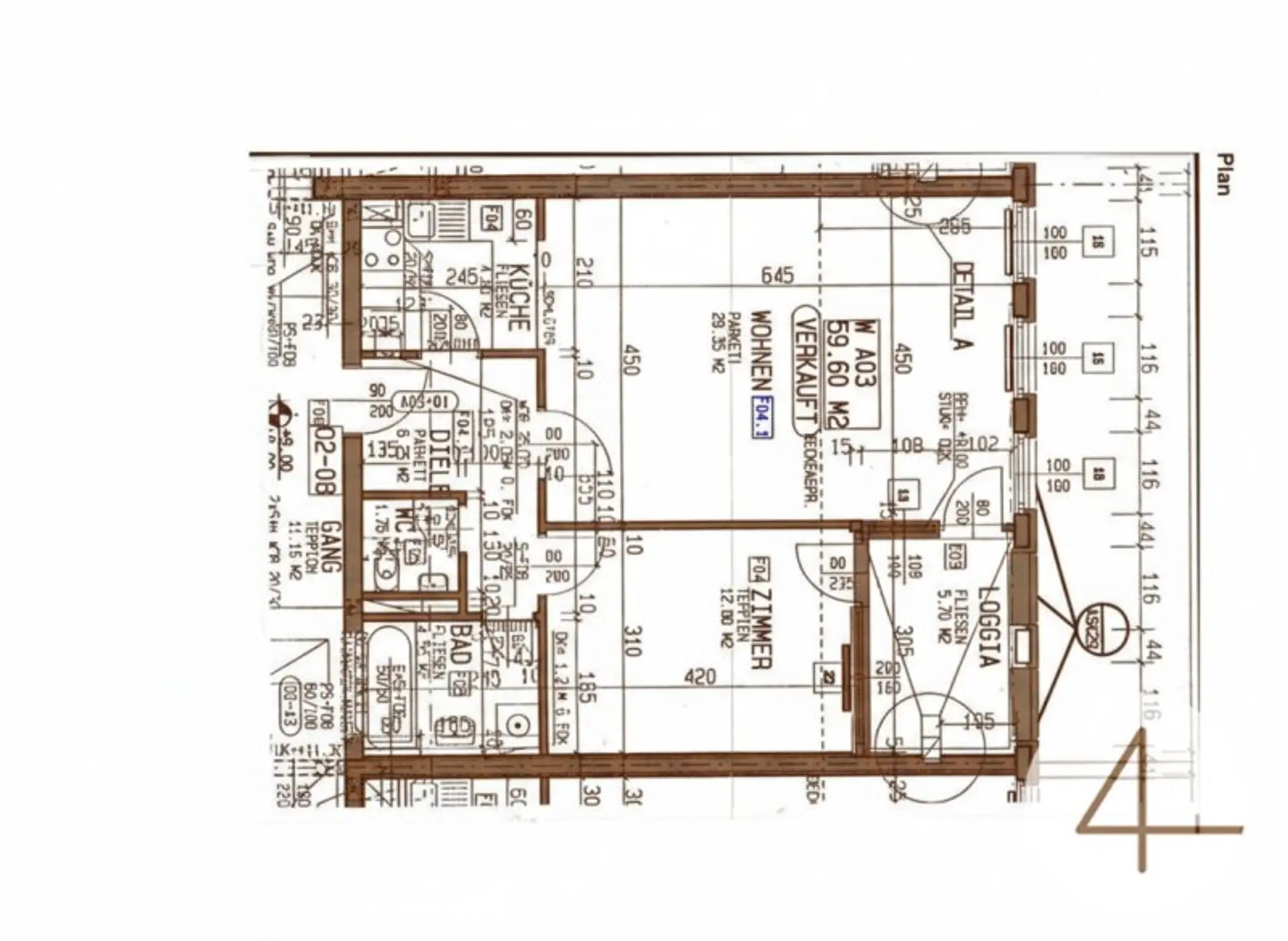 59,60 m2 Wohnfläche lt. Plan +. Loggia 5,70 m2