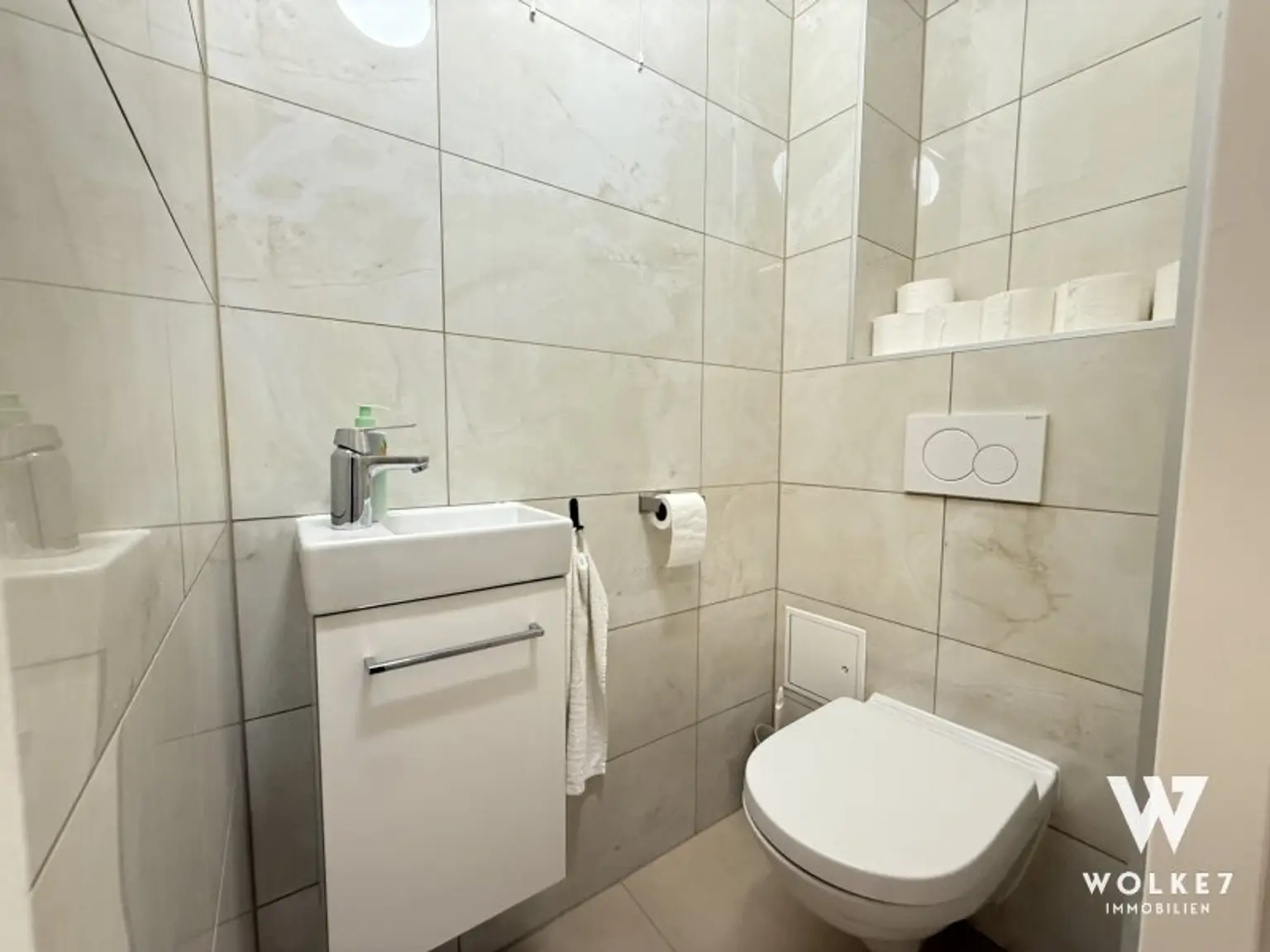 Separates WC + Bad mit Dusche und Platz für Waschmaschine