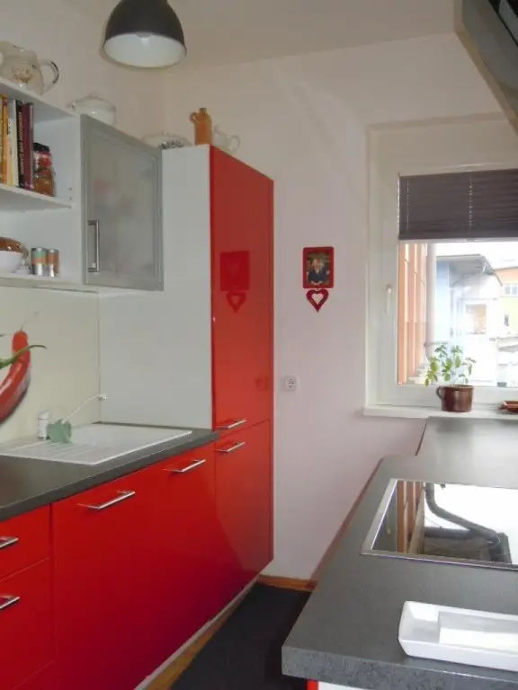 Die Wohnung besteht aus einem Vorraum, einem Badezimmer (mit Badewanne samt Duscharmaturen, Waschbecken, WC und Waschmaschinenanschluß), einem Wohn- Esszimmer samt angrenzender, voll ausgestatteter Küche (ablösepflichtig!) und einem Schlafzimmer.